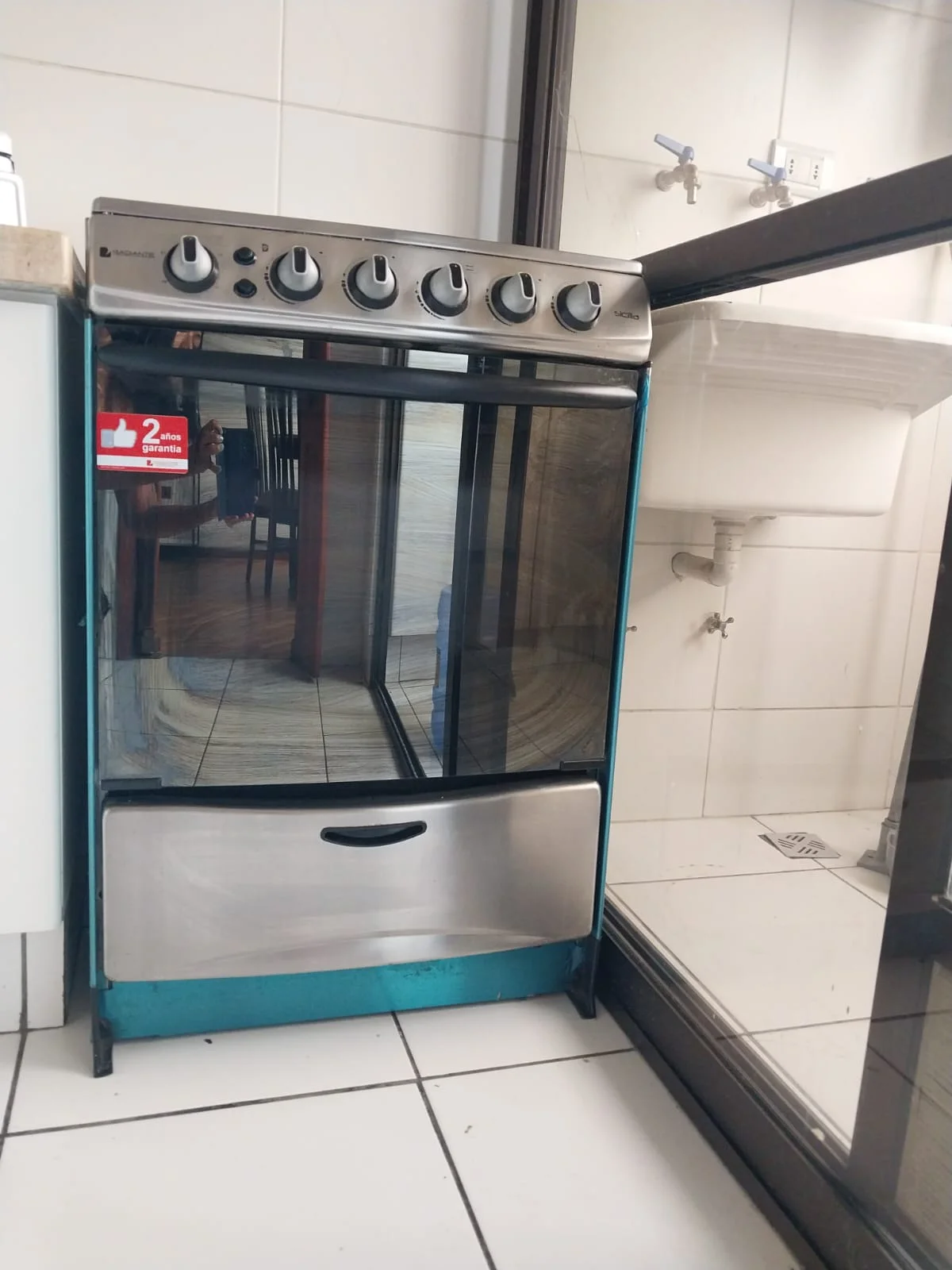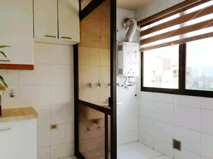 Área de lavado con calefón y lavadora