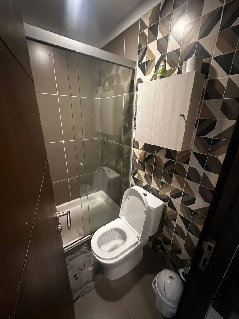 El baño moderno y la chapa inteligente añaden un toque de practicidad y seguridad.