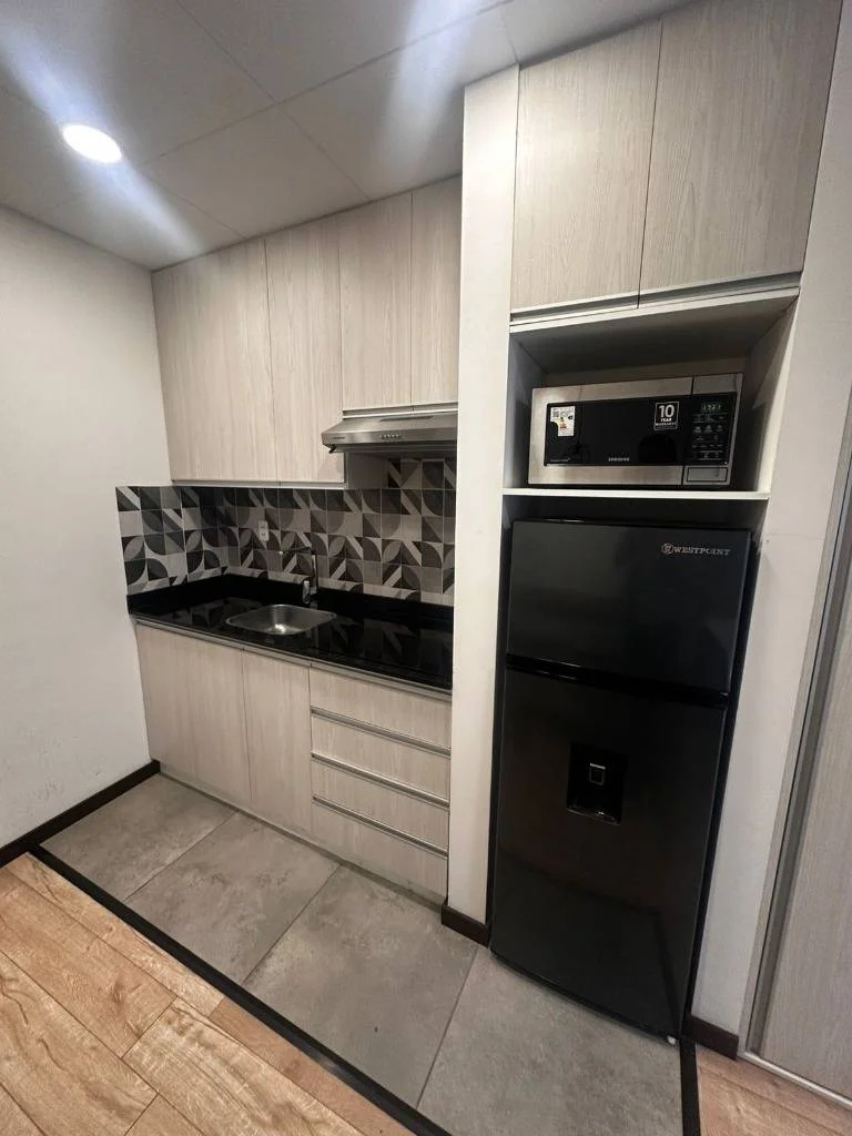 Ubicado en un primer piso tipo subsuelo, es un espacio muy cálido y silencioso, ideal para profesionales o parejas jóvenes que buscan confort y buena ubicación.