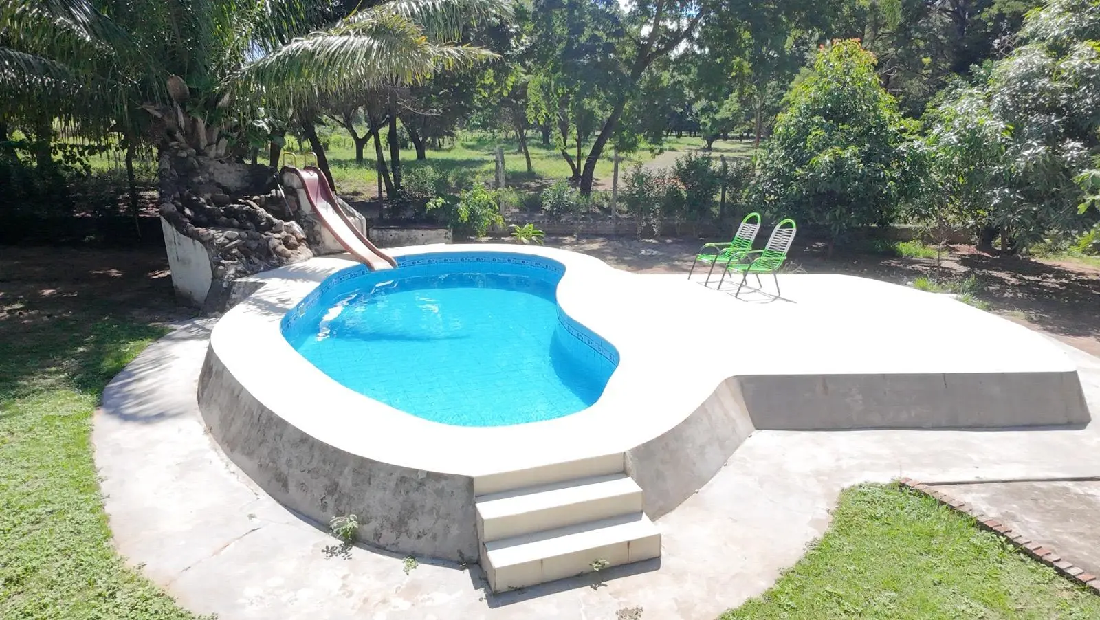 * Piscina con tobogán y amplias áreas verdes