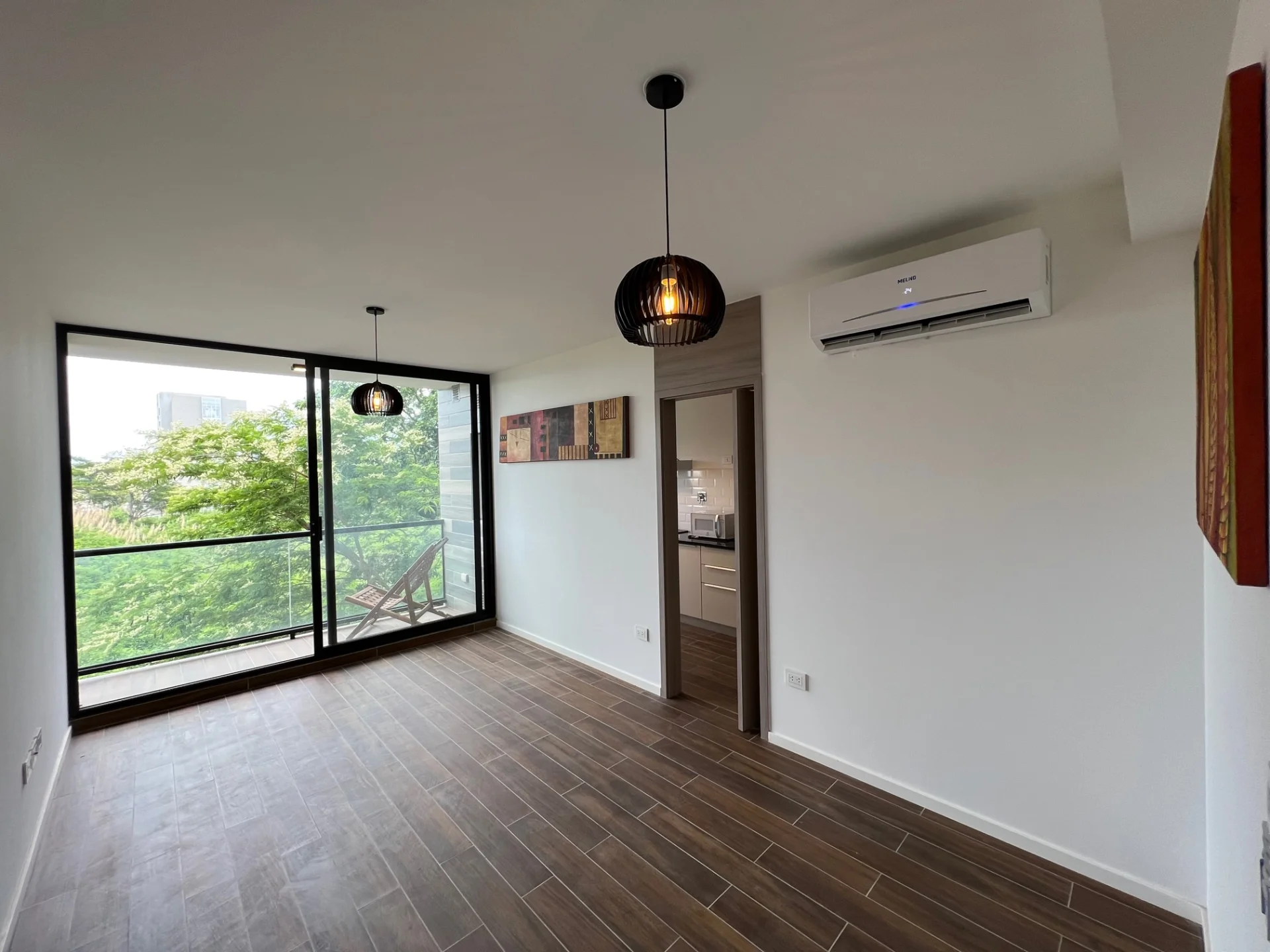 - Living comedor con acceso a balcón, equipado con aire acondicionado.