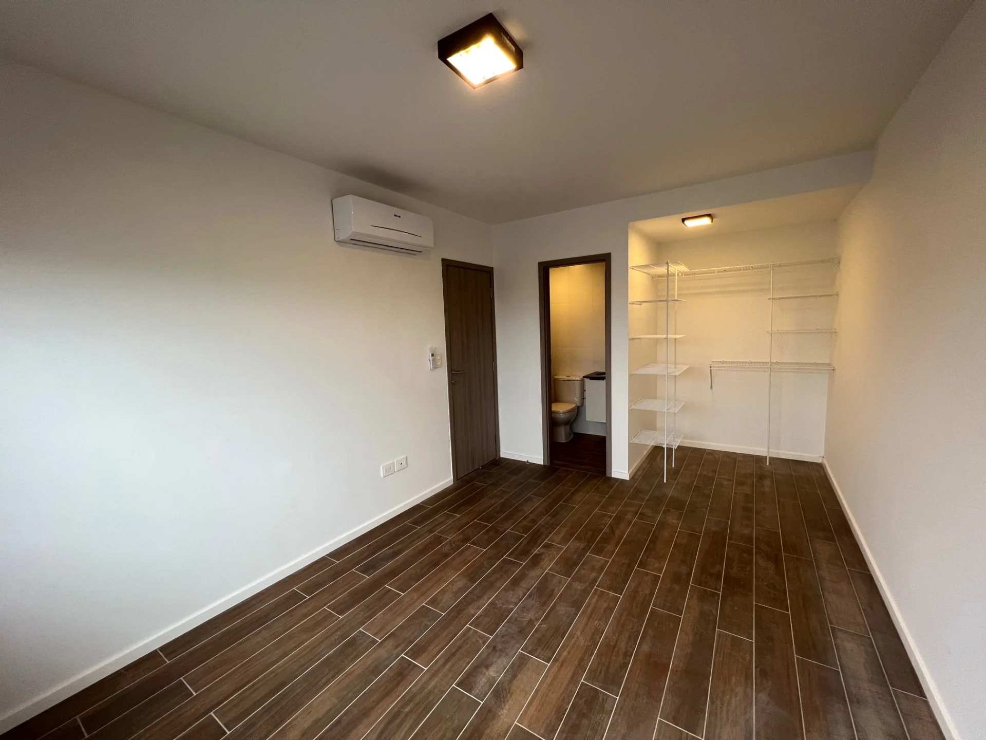 - 1 dormitorio en suite, equipado con aire acondicionado, rejillas, cortinas, baño privado (con espejo y cajonería).