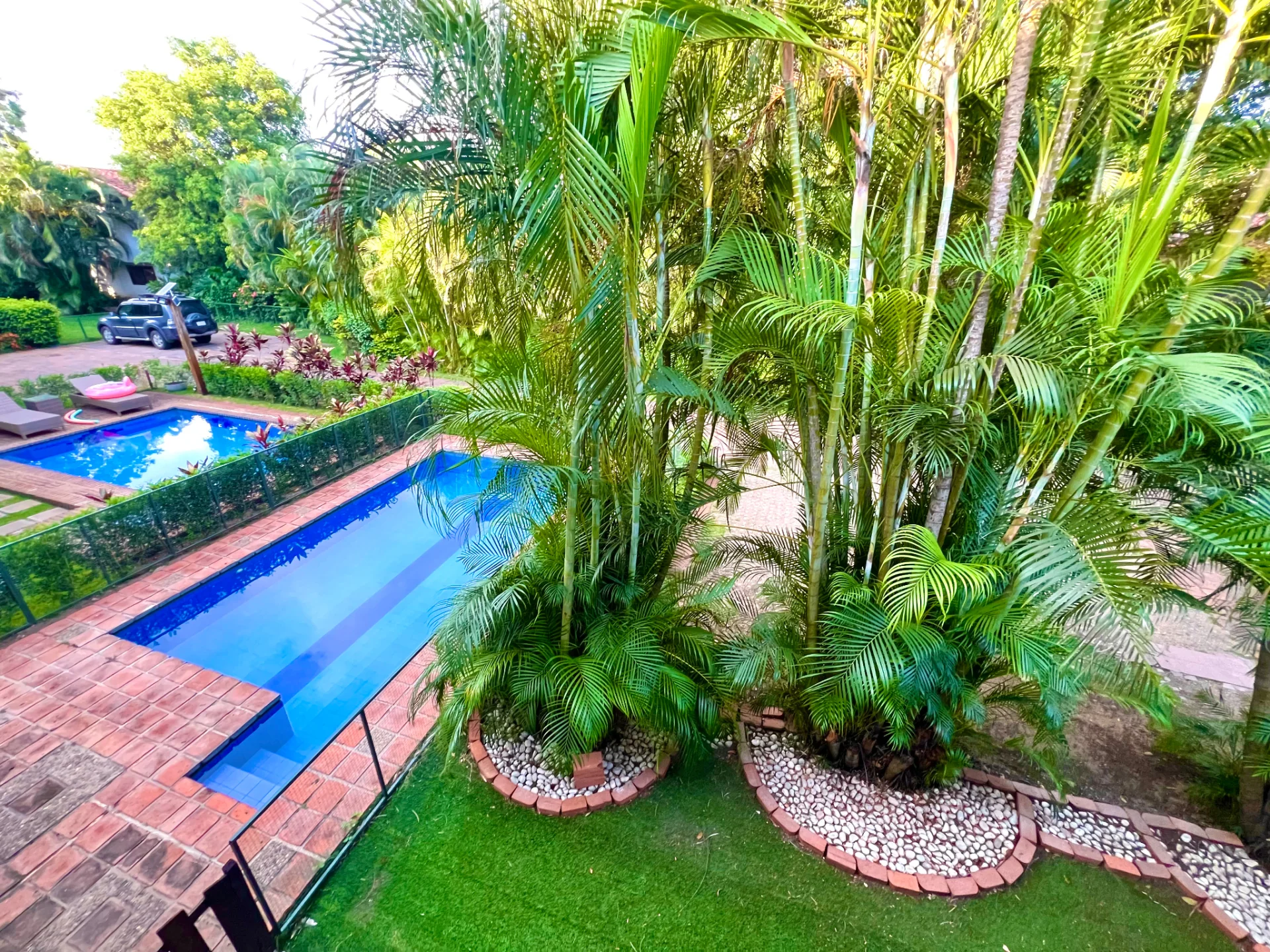 VISTA PANORAMICA HACIA JARDINES Y PISCINA PROPIA