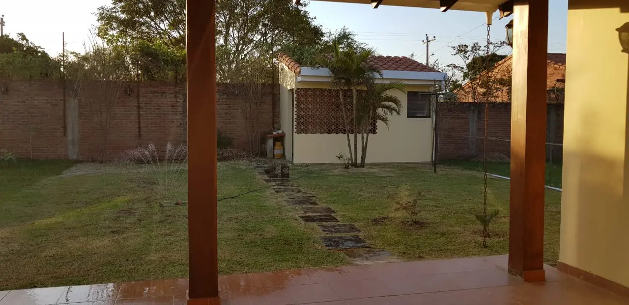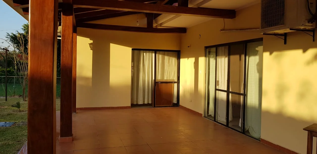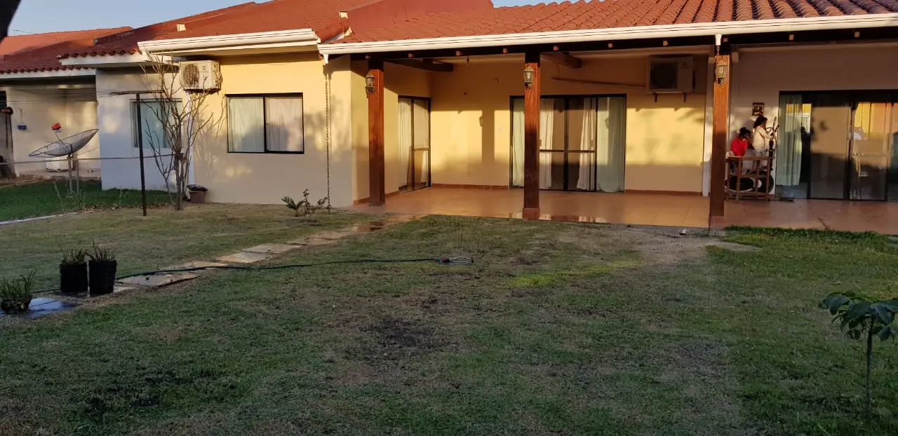 ZONA OESTE: KM 8 1/2 Doble vía La Guardia Superficie de terreno: 300 mts2 Superficie Construida: 141 mts2 Consta de.: ✅ 1 Suite con aire acondicionado, vestidor empotrado, baño privado amoblado y con box. ✅1 Dormitorio con ropero empotrado con aire acondicionado, baño compartido amoblado y con box. ✅Living comedor (incluye comedor de 8 sillas madera tajibo), con aire acondicionado. ✅Cocina amoblada con muebles inferiores y superiores, con extractora, heladera de 2 puertas verticales y cocina de 5 hornillas. ✅Ante Sala o Sala TV. ✅ Galería Grande conexión con la Suite ✅ Área de Lavandería Techada con conexión para lavadora ✅ Cuarto de Deposito ✅ Termotanque a gas. ✅Jardín trasero y delantero ✅Garaje para 2 vehículos ???????? ✅Toda la casa cuenta con luminarias Led y dicroicos . ????Áreas sociales: ✅ piscinas. ✅ Churrasqueras ✅Cancha polifuncional. ✅ salón de evento amplio. ✅Seguridad las 24 horas. Para mayor informe: Cel. y whatsapp: 60833662