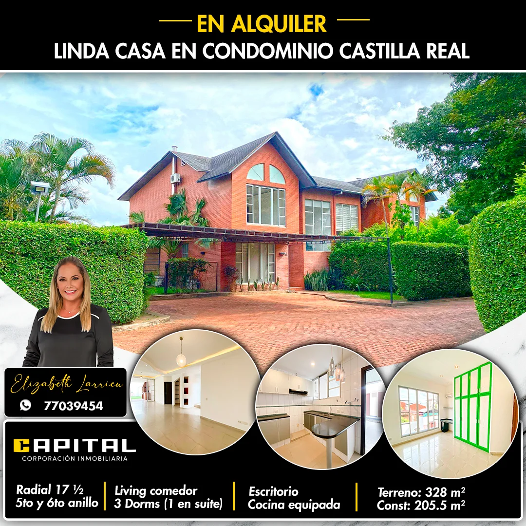 Esta ubicada en la Zona Oeste, Radial 17 ½, entre 5to y 6to anillo, "Condominio Castilla Real" , es un condominio de solo 8 viviendas muy seguro y familiar