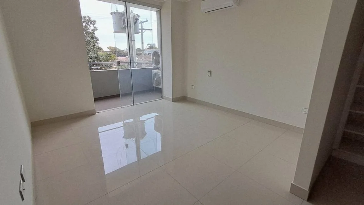 Living comedor con balcón y A/C