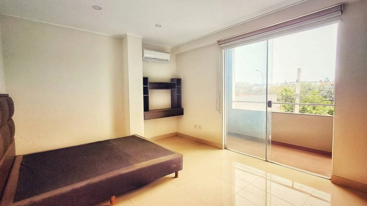 1 dormitorio con balcón y A/C