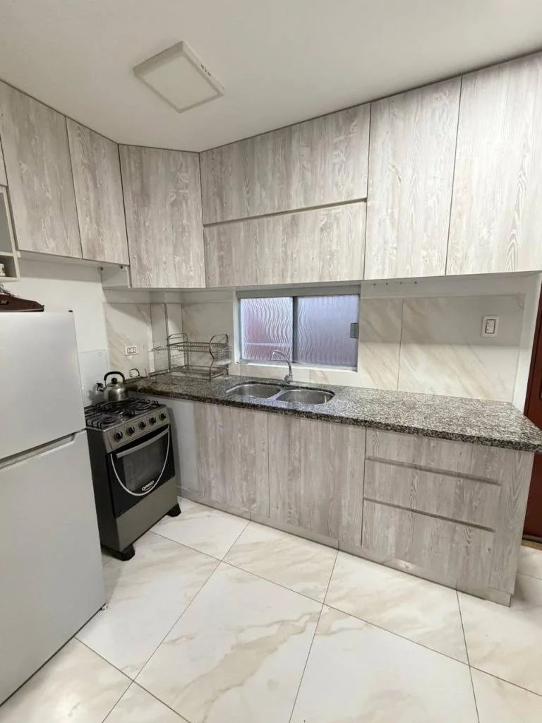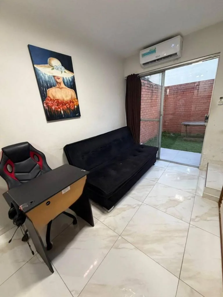 * Planta baja: Cocina equipada, sala integrada, baño de visitas, pequeño patio con Churrasquera y lavandería.