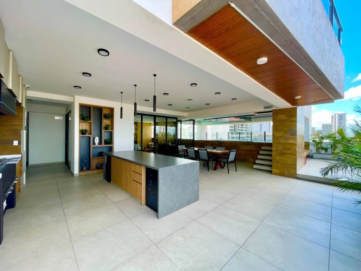 Penthouse con amplios ambientes, cocina completamente equipada, aire acondicionados y cortinas en todos los ambientes, hermosa vista desde el piso 13, acceso directo al departamento por el elevador. aéreas sociales de lujo, piscina temperada con cascada, sala de cowork, dos churrasqueras equipadas, parqueo y baulera en el subsuelo, recepción con seguridad las 24hrs. El alquiler incluye expensas.