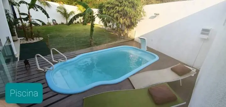 ✔ Backyard with its own pool and emerald grass with plants.
