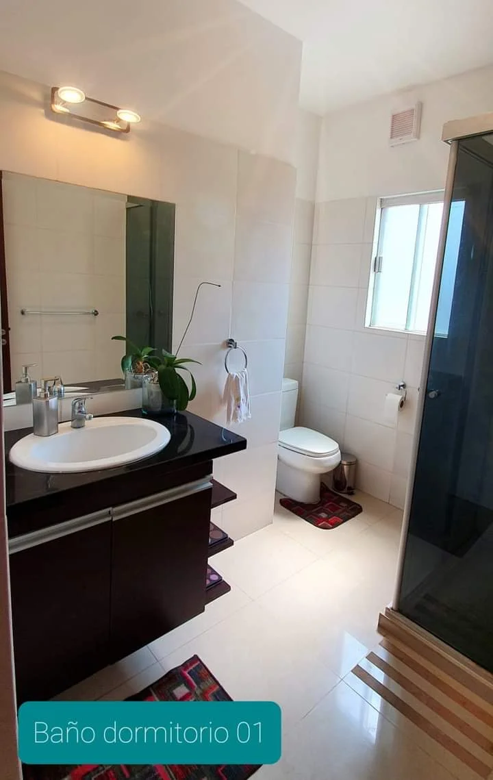 ✔ 1 Bathroom, with its box and low furniture.