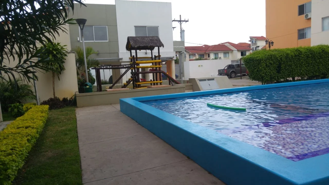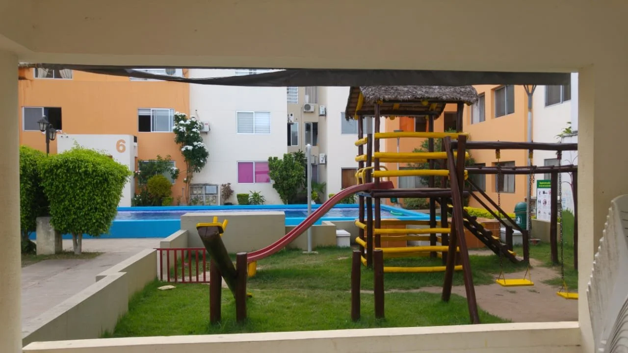 Lindo Departamento en planta baja con 2 dormitorios, Garaje y Terraza 64,6 mts2 consta de: Sala - Comedor, Cocina, Baño, 2 Dormitorios, seccion para Lavadora, Calefon, Cortinas, Lámparas y Aires Acondicionados, Adicional 12,5 mts2 de Parqueo. Av. Centenario antes del 4to anillo, en Condominio NAVARRA, cuenta con áreas sociales, 2 Piscinas, Churrasquera y parque infantil.