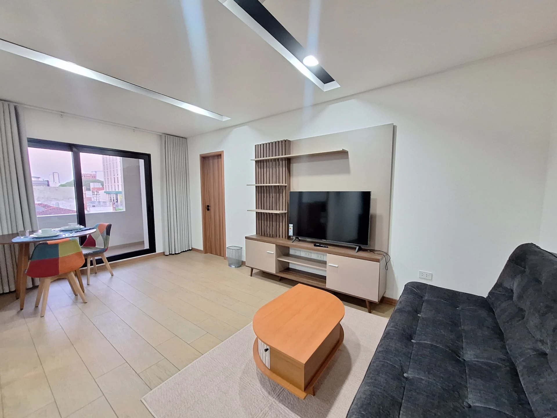 ✨ Living–comedor acogedor, con muebles modernos y aire acondicionado.