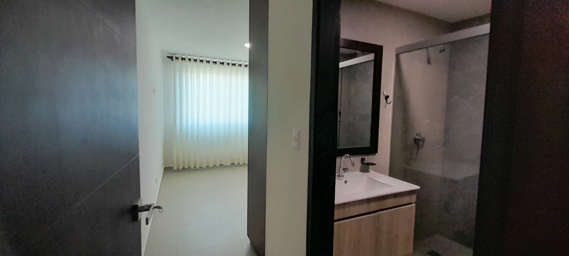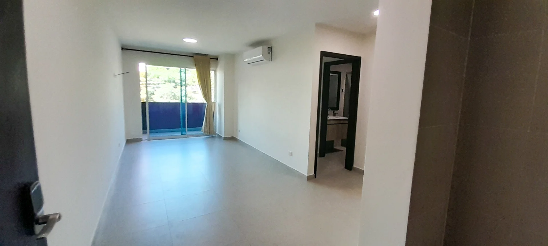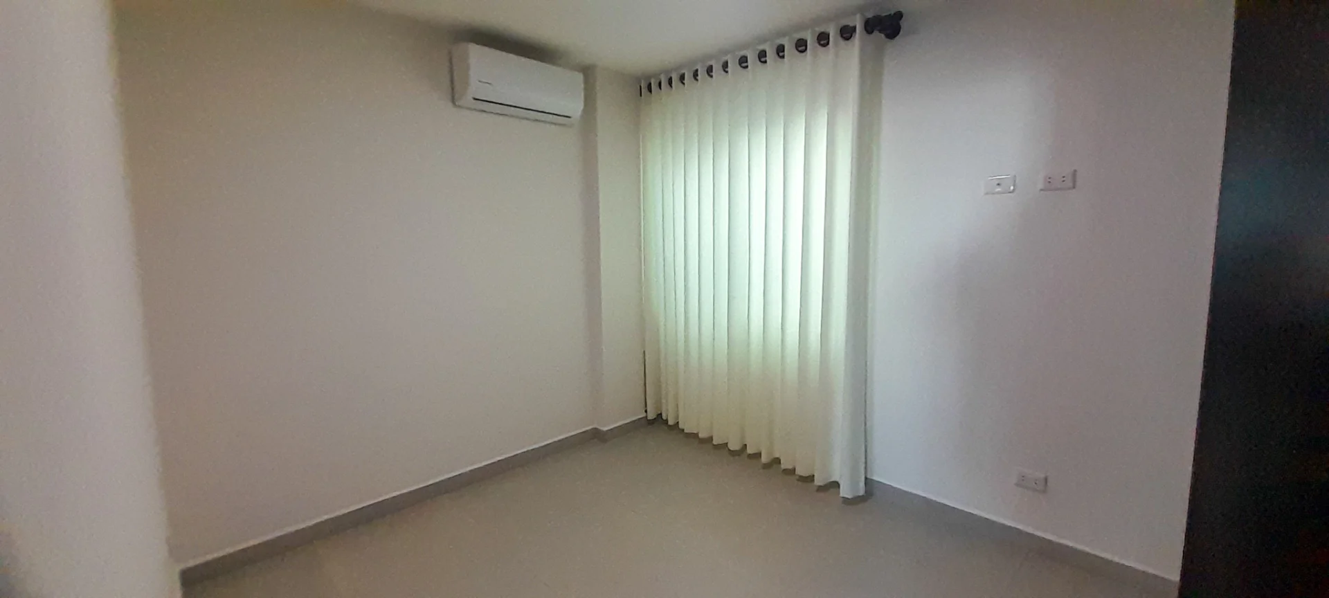 Living comedor con balcon, cortina y a/c