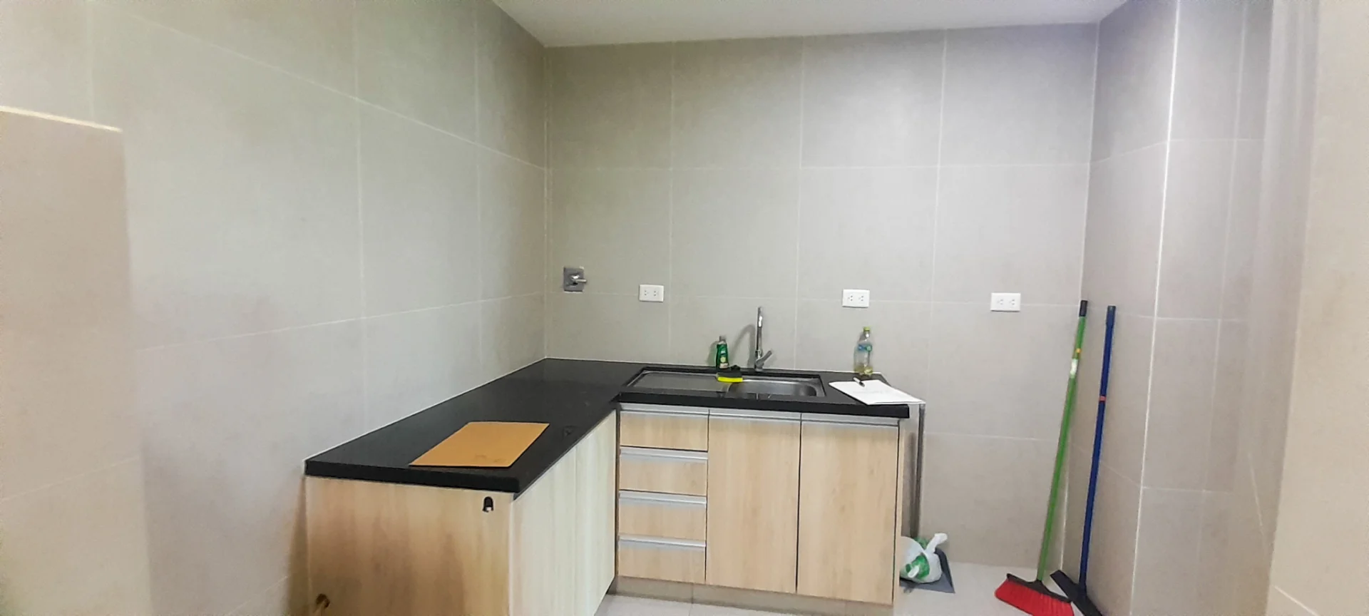 Cocina separada con muebleria inferior y revestimientos