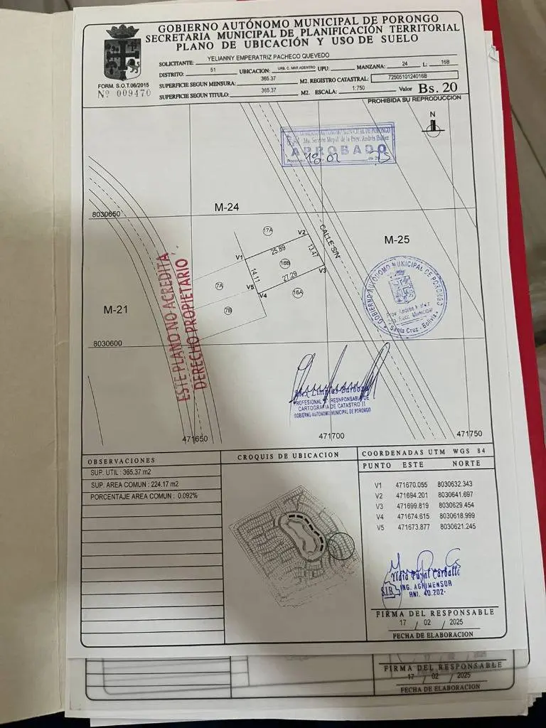 Terreno en venta de 365.37 m2 en urubó, mar adentro a 2 cuadras de la playa