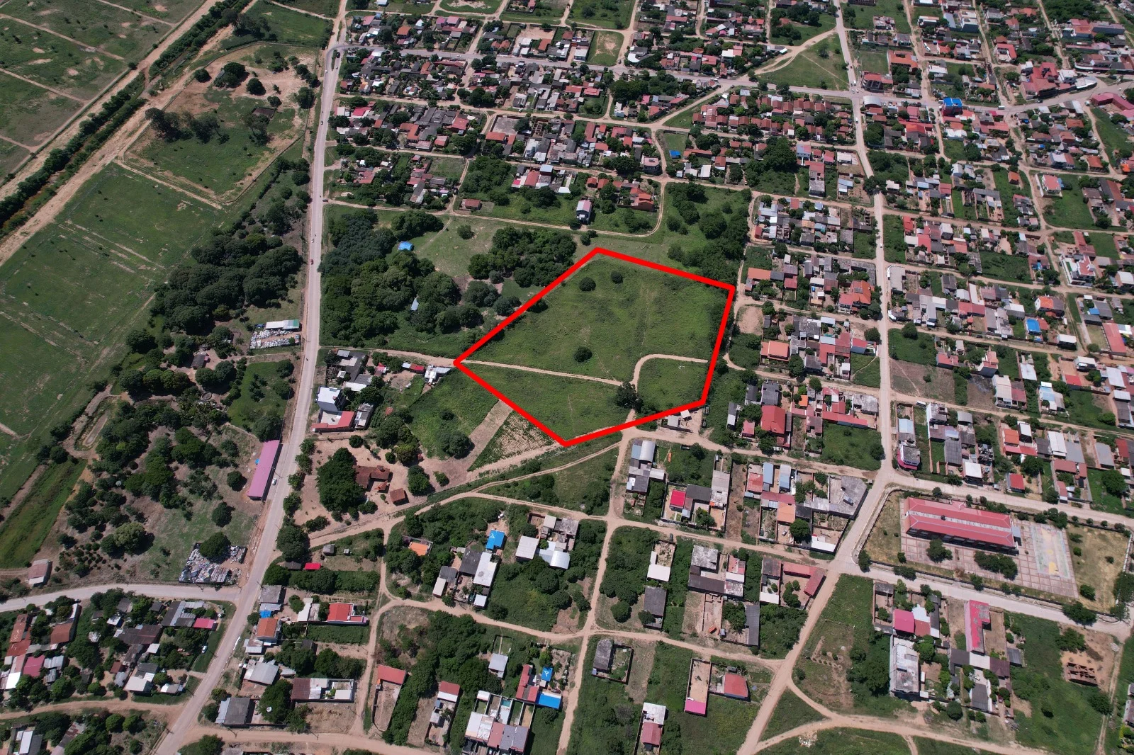 A 100 metros del pavimento, rodeado de mercados, colegios y centros de salud.