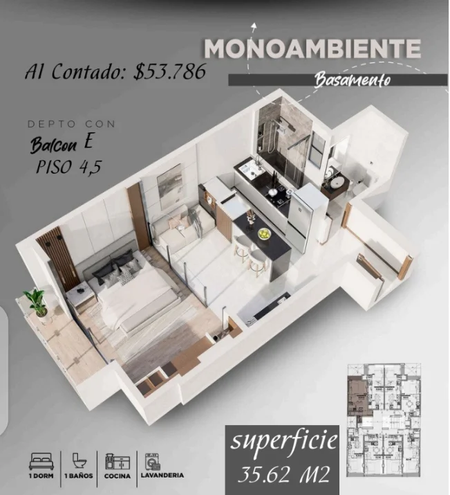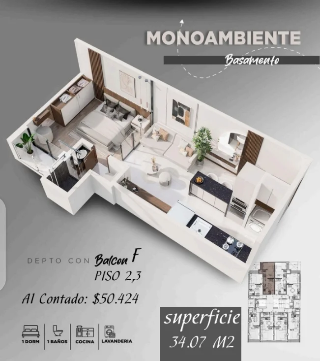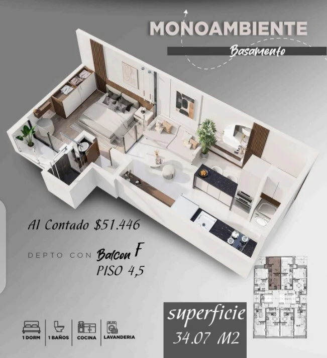 Departamentos de 1 dormitorio y Monoambientes.