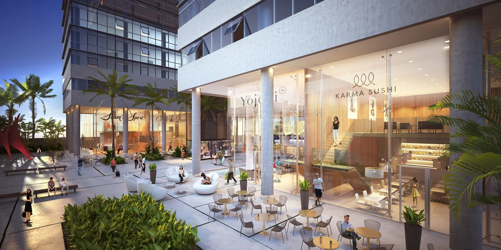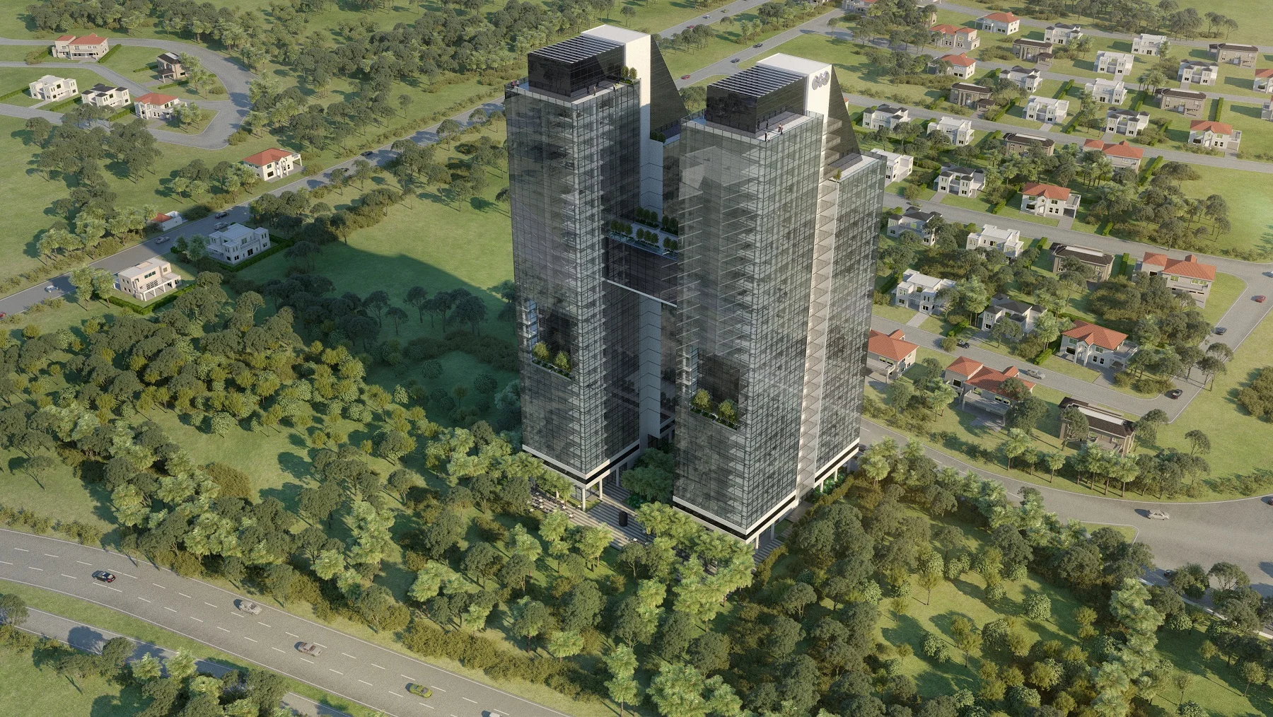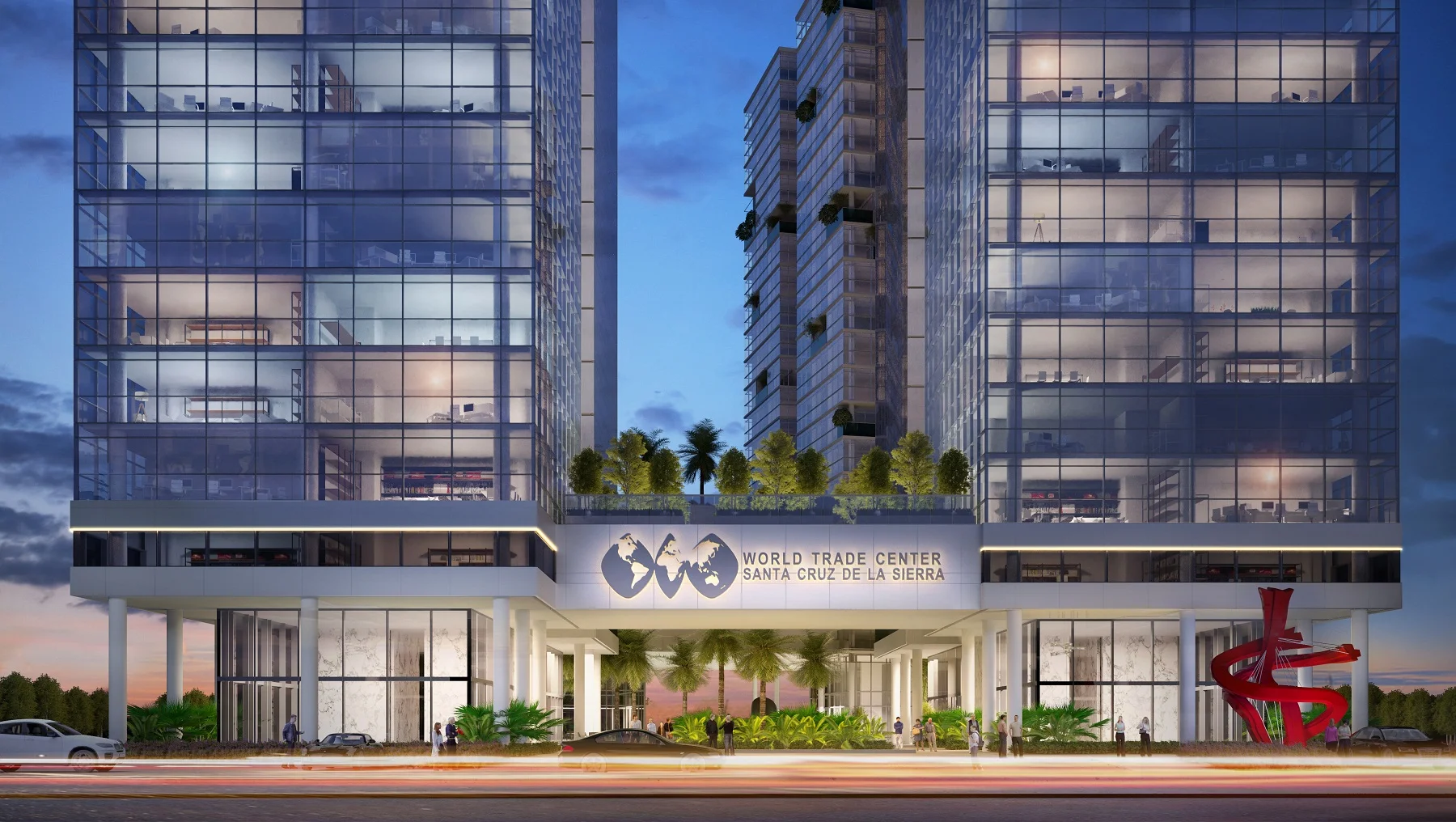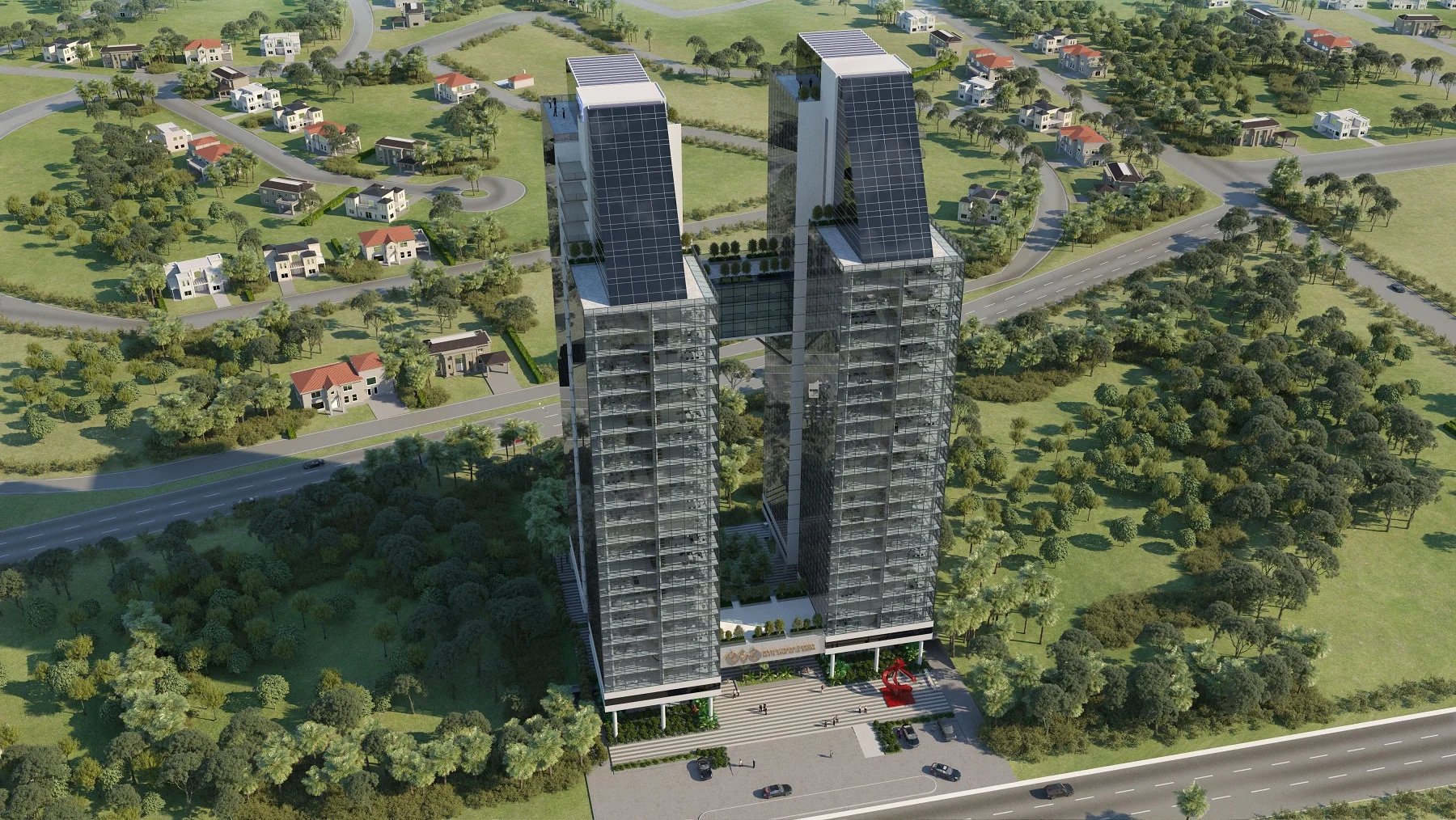 El complejo contará con 2 torres de oficinas de 28 pisos unidas por 4 puentes. Serán aproximadamente 70.000m2 de construcción y 650 parqueos privados y de visitantes en 2 subsuelos.