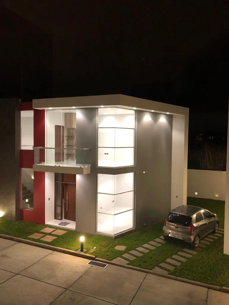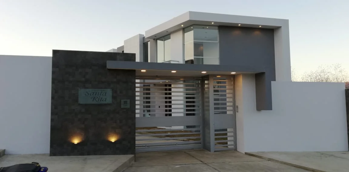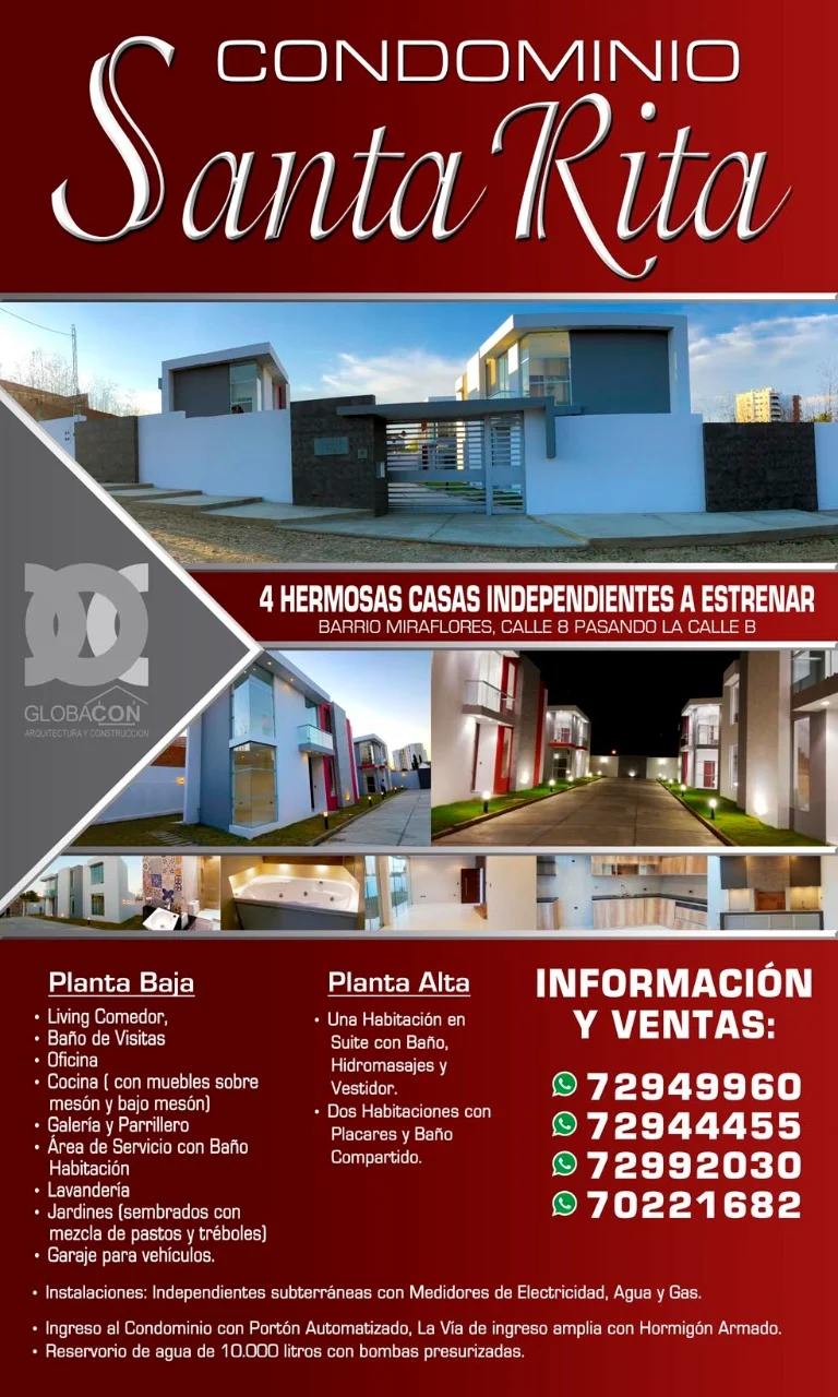 Hermosas casas a estrenar, de dos plantas. En planta alta tres dormitorios, uno con vestidor e hidromasaje, los otros con placares. En planta baja una habitación opción a escritorio, living comedor, cocina con muebles, baño de visitas, área de servicio con habitación deposito, patio, baño y lavandería, galería con parrillero, garaje para dos autos, césped. Ingreso con calle privada y asfalto rígido, portería y guardia de seguridad. 100 % financiables.