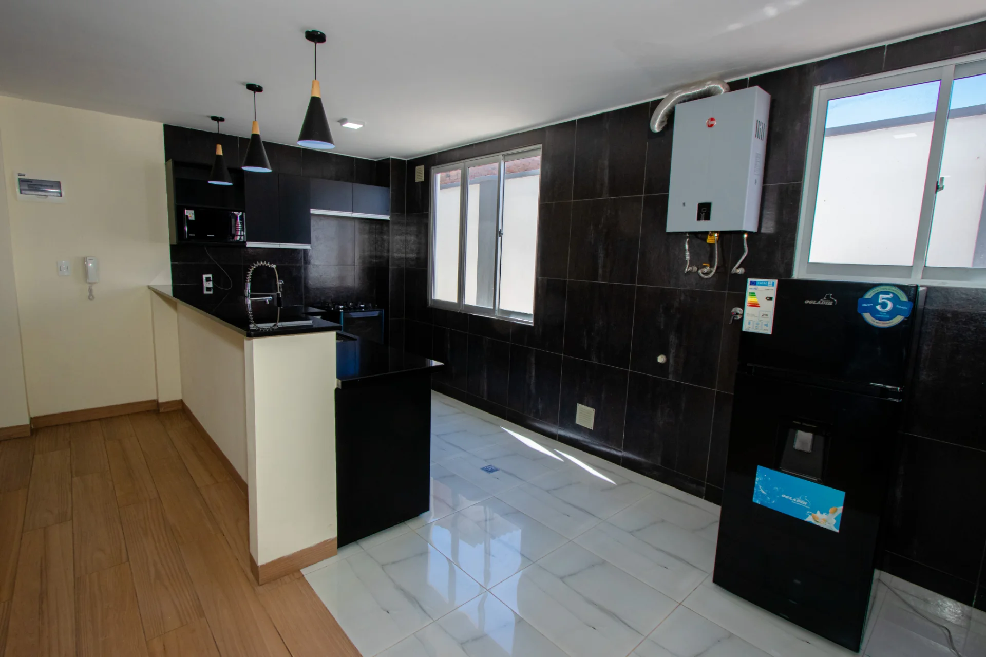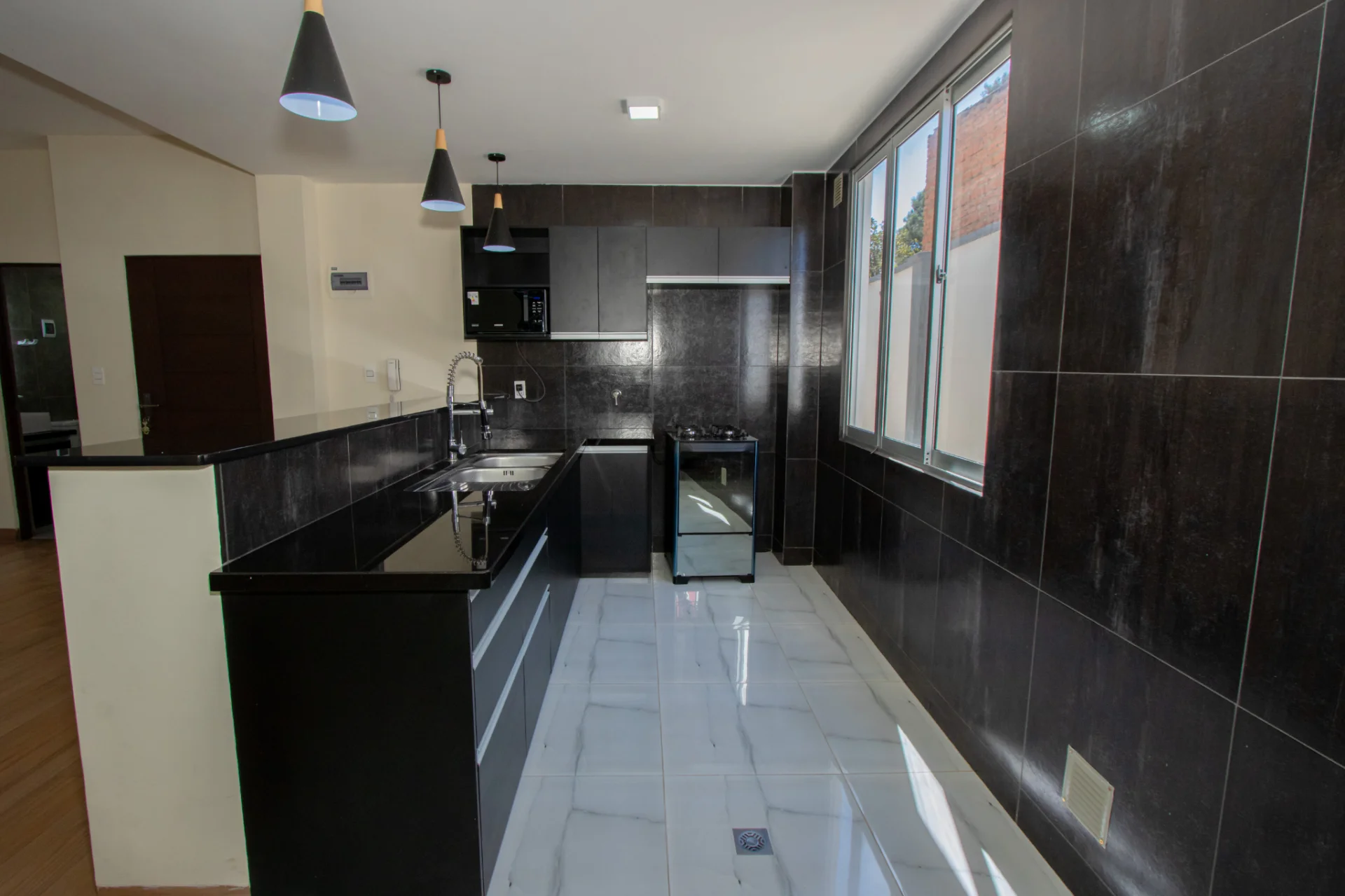 - Cocina americana con cajonería alta y baja.