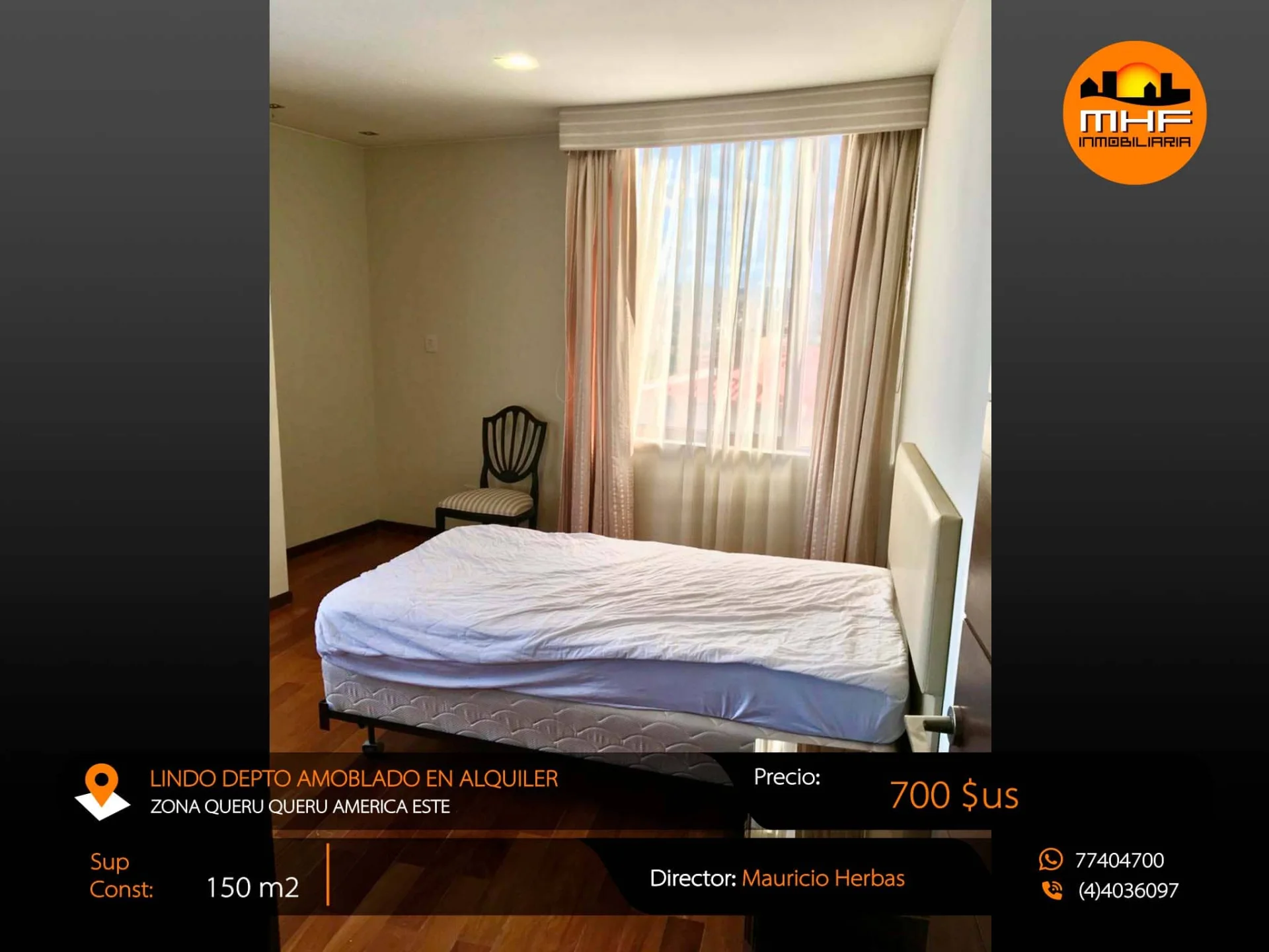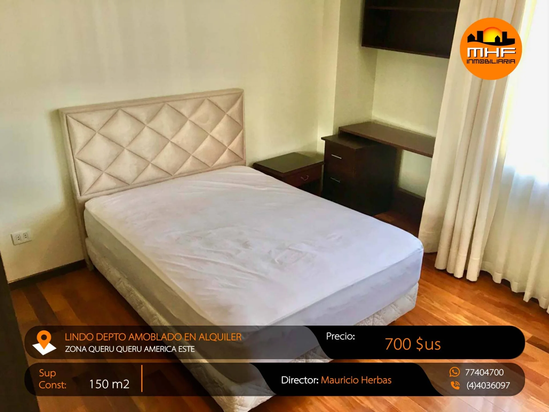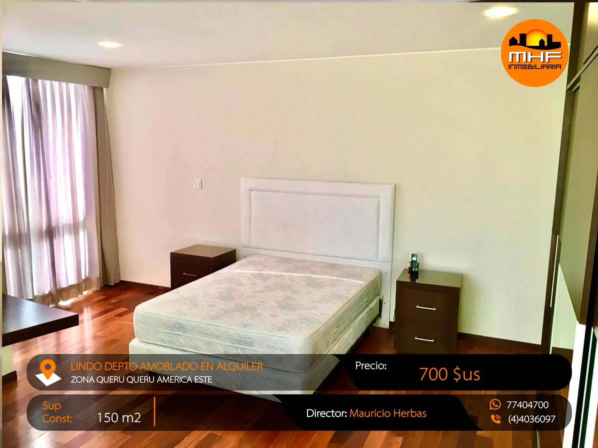 LUJOSO Y CONFORTABLE DEPARTAMENTO AMOBLADO TIPO EJECUTIVO DE 3 DORMITORIOS, DEPENDENCIAS AMPLIAS Y COMPLETAS, LISTO PARA SER HABITADO. UBICADO EN LA MEJOR ZONA DE LA CUIDAD AV. AMERICA ESTE QUERU QUERU CERCA PARQUE FIDEL ANZE.