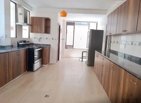 Amplia cocina amoblada con comedor de diario y despensa