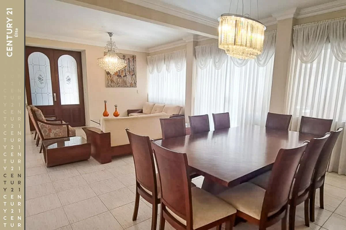Planta Baja: Parqueo p/4 vehículos, 1 Suite, Escritorio, Baño de Visitas, Living - comedor, Cocina Independiente con comedor de diario, Despensa, Dependencia de servicio completa, Lavandería, Galería, Churrasquera, Piscina, Depósito, Jardín.