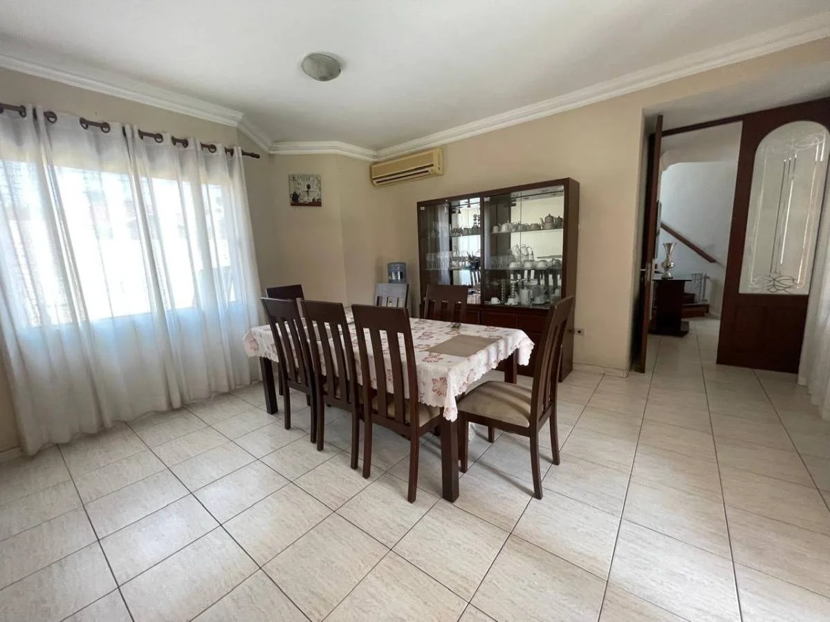 Planta baja: Parqueo para 4 vehiculos, 1 suite, escritorios, baño de visitas, living comedor, cocina independiente con comedor de diario, despensa, dependencia de servicio completa, lavandería, galeria, churrasquera, piscina, depósito, jardín.