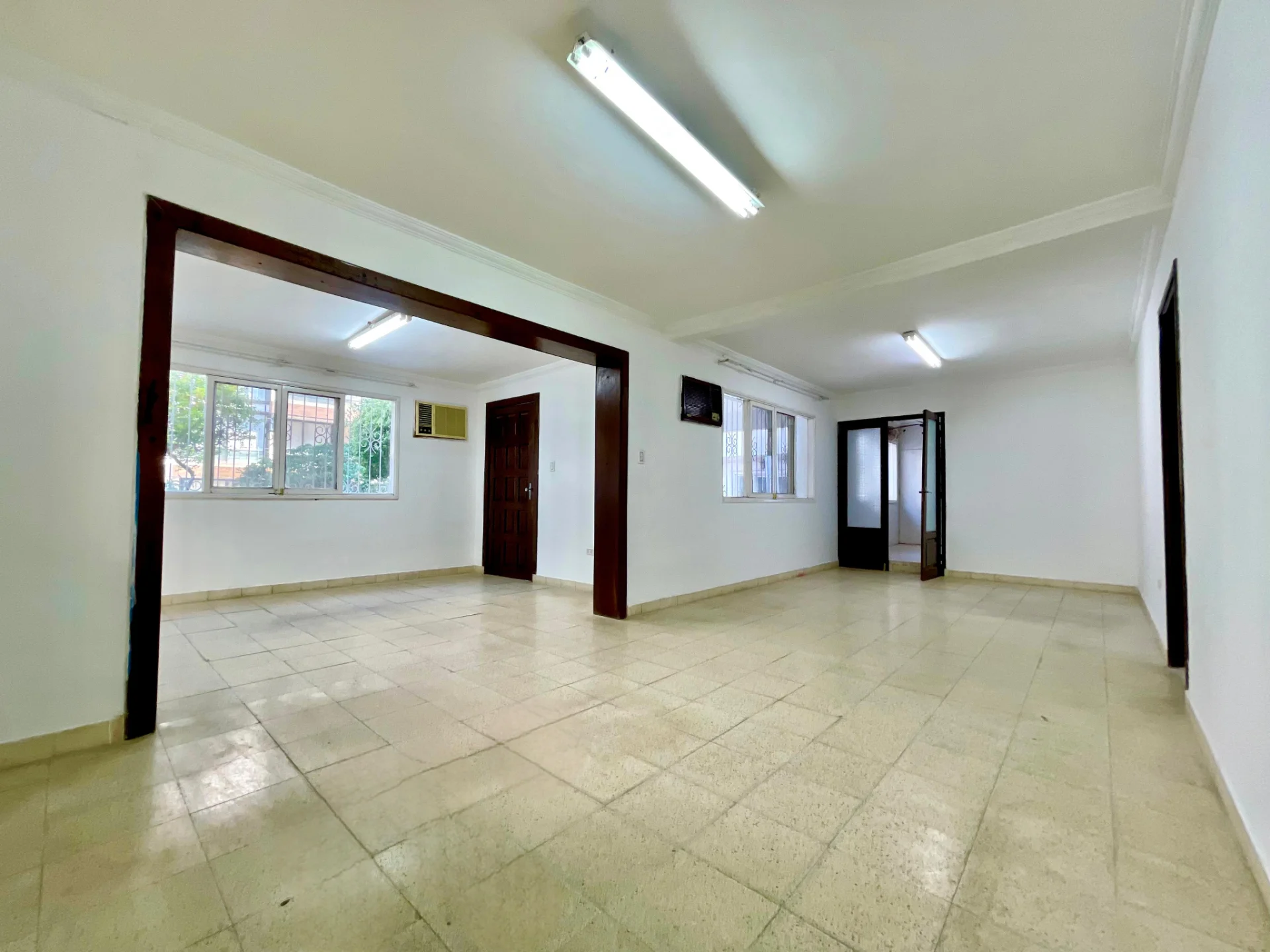 12 Ambientes distribuidos en 2 Construcciones (8 habitaciones, 3 salones, escritorios, 2 cocinas, patio, depósitos, áreas de servicio)