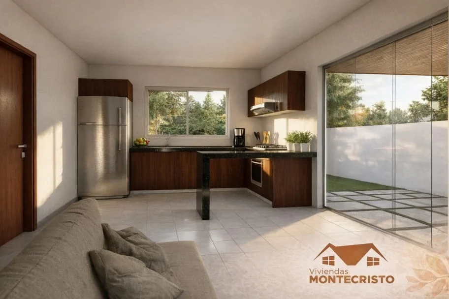 - Cocina equipada con muebles altos y bajos.
