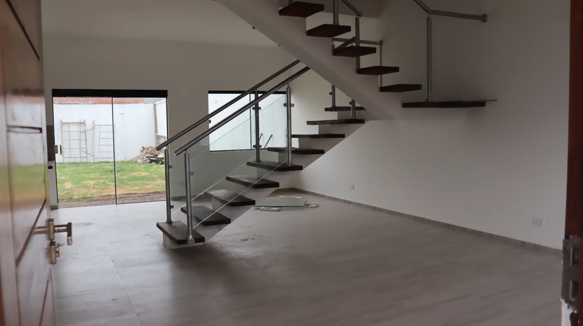 ➡️ Falta colocar vidrios en las barandas de la escalera