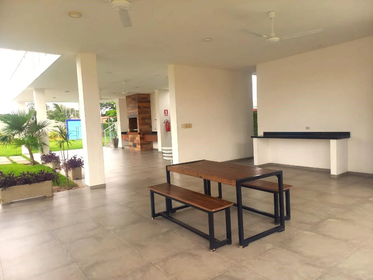 Amplia galería y jardín