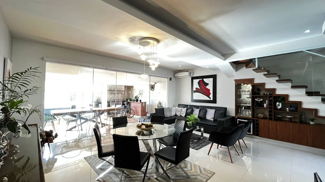 En una excelente ubicación en el Sur de Santa Cruz, se encuentra disponible esta hermosa propiedad en venta. Esta casa de 3 dormitorios y 2 baños ofrece todas las comodidades que puedas desear. Con una superficie de 162 m2 y en excelentes condiciones, es una excelente oportunidad para aquellos que buscan una vivienda espaciosa y lista para habitar. Esta propiedad cuenta con amenidades de lujo, como aire acondicionado, box de baño, churrasquera y equipamiento de cocina. Además, incluye garaje, lavandería, living comedor y muebles de cocina, lo que brinda un ambiente cómodo y funcional para toda la familia. Disfruta de un patio privado donde podrás relajarte al aire libre y darte un chapuzón en la piscina en los días calurosos. El piso de porcelanato agrega un toque de elegancia a toda la propiedad y el ropero empotrado proporciona un amplio espacio de almacenamiento. La seguridad es una prioridad en esta propiedad, ya que cuenta con cámaras CCTV, portería las 24 horas y un guardia de seguridad. Además, su ubicación estratégica en el Sur de Santa Cruz brinda cercanía a centros comerciales, restaurantes y colegios de prestigio. No pierdas la oportunidad de adquirir esta casa en perfectas condiciones por un precio de USD 155.000. Contáctanos hoy mismo y agenda una visita para conocer esta maravillosa propiedad en persona.