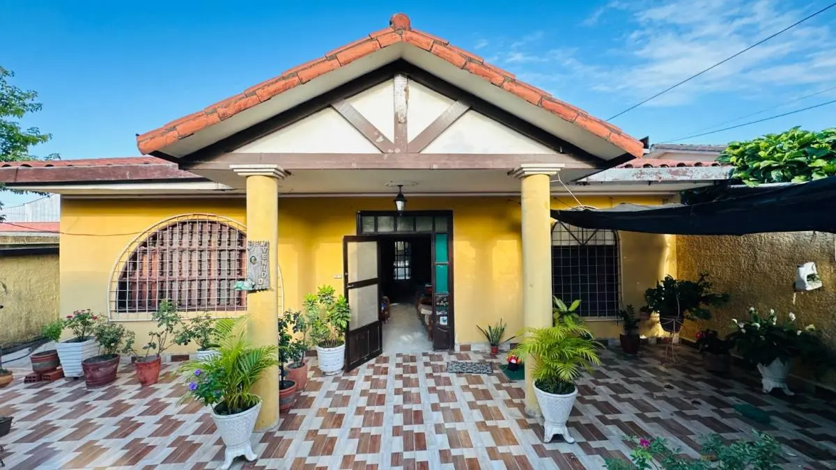 Consta de 3 Domrmitorios, 1 baño, sala, cocina amplia, galería posterior con 2 baños, amplio patio y jardín frontal con acceso lateral al patio posterior