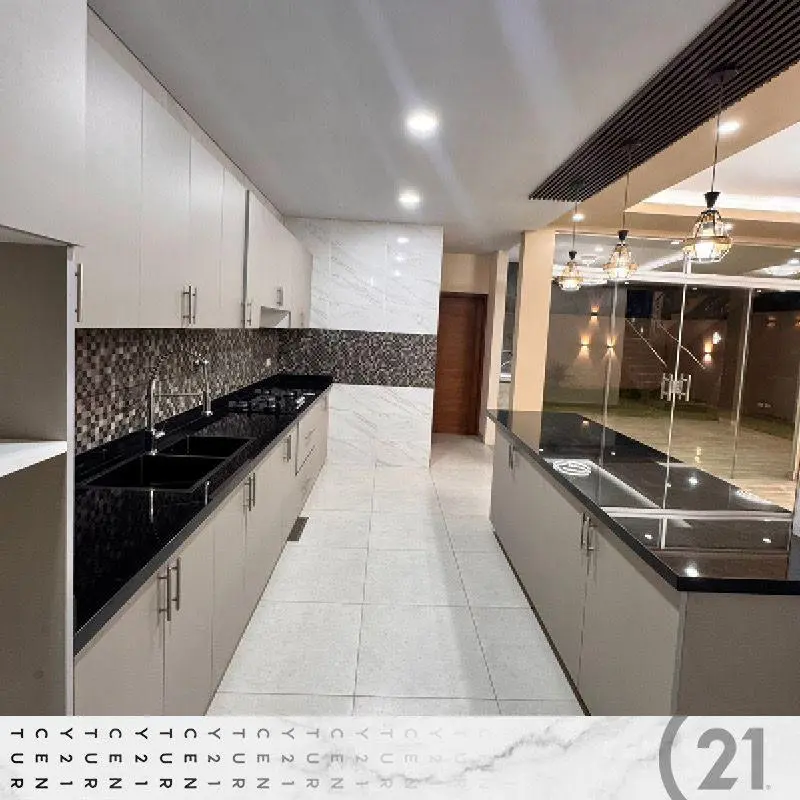 Cocina americana con porcelanato de obra fina