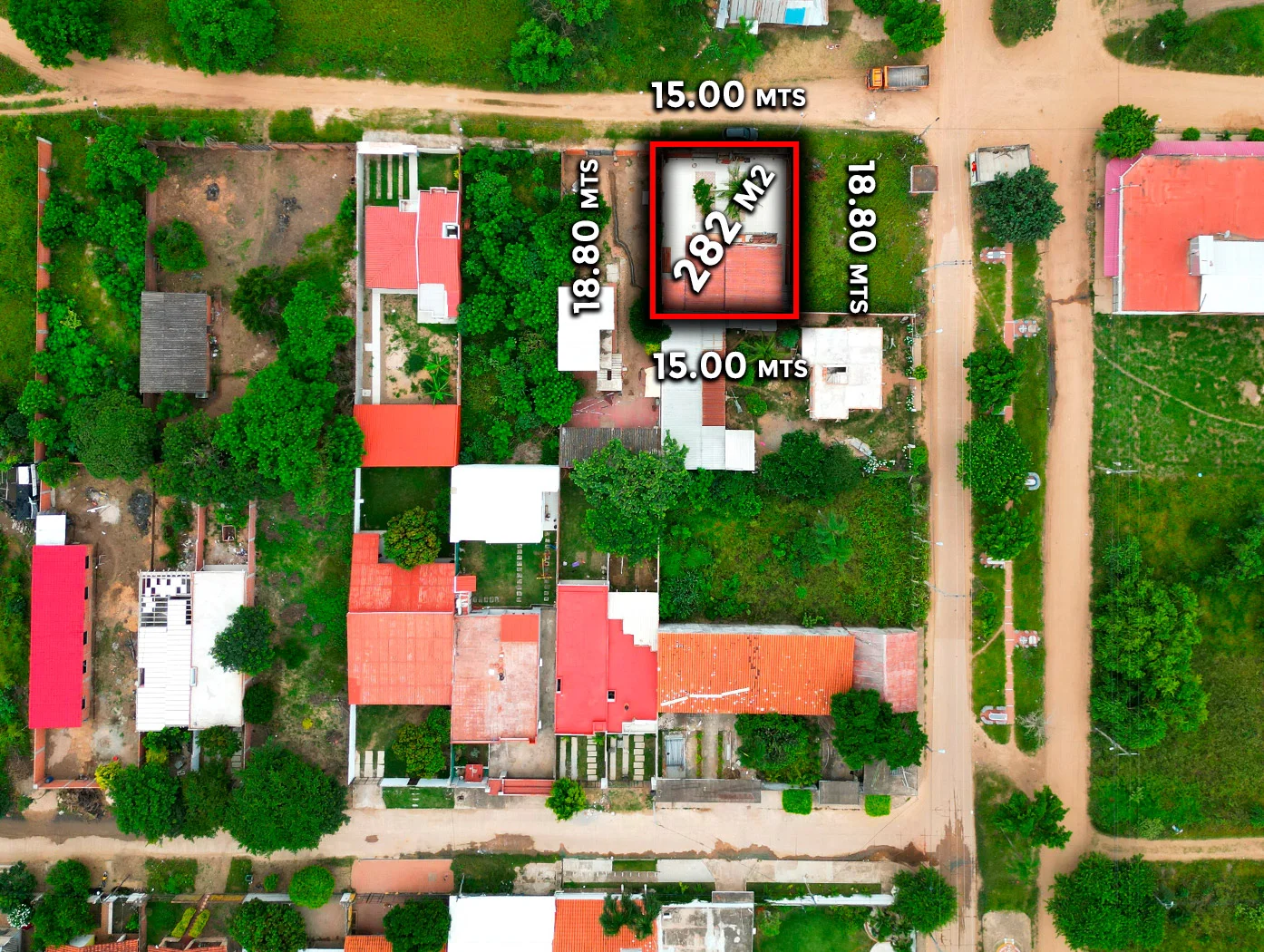 15 m2 de Frente x 18.80 m2 de fondo