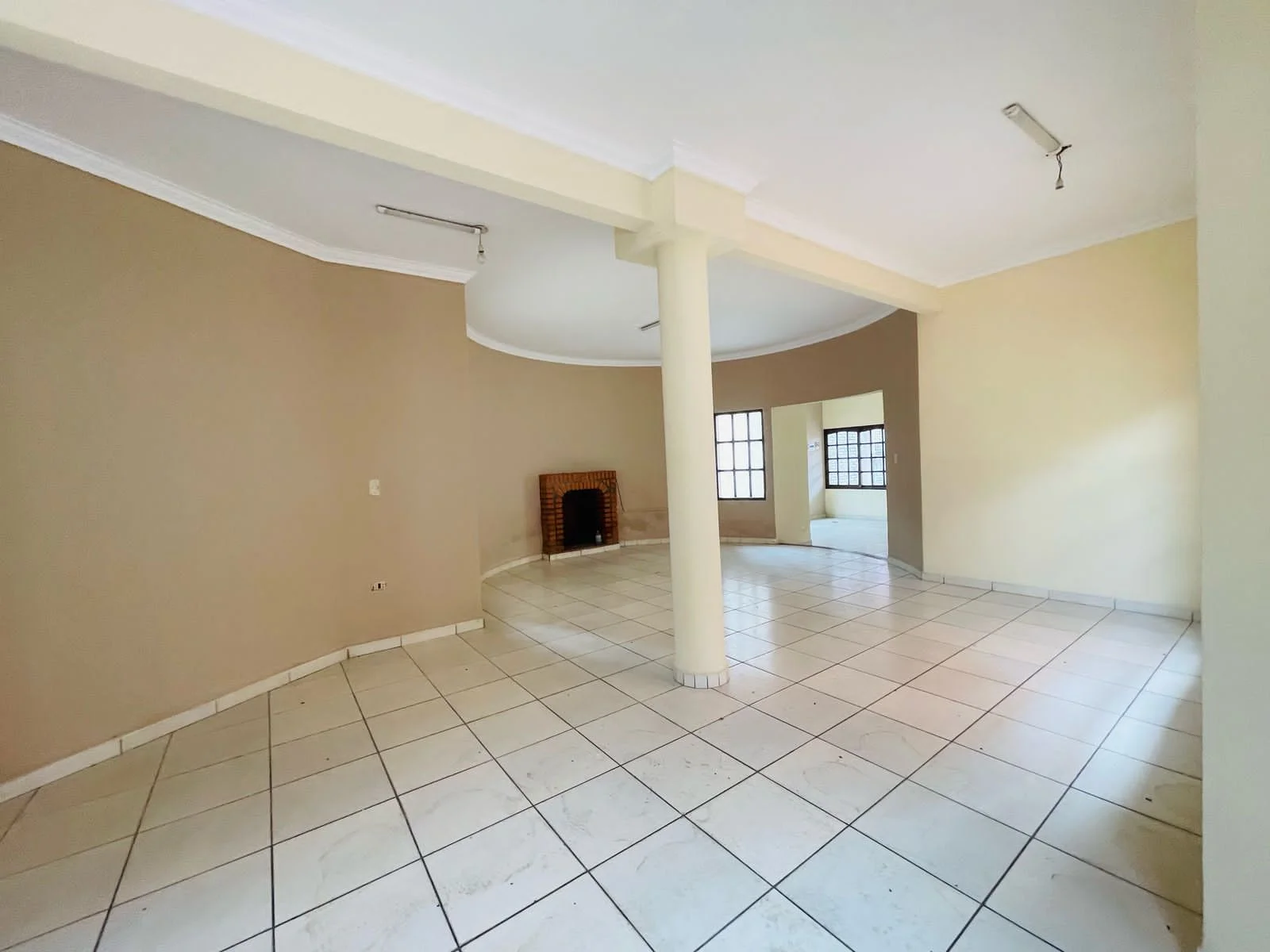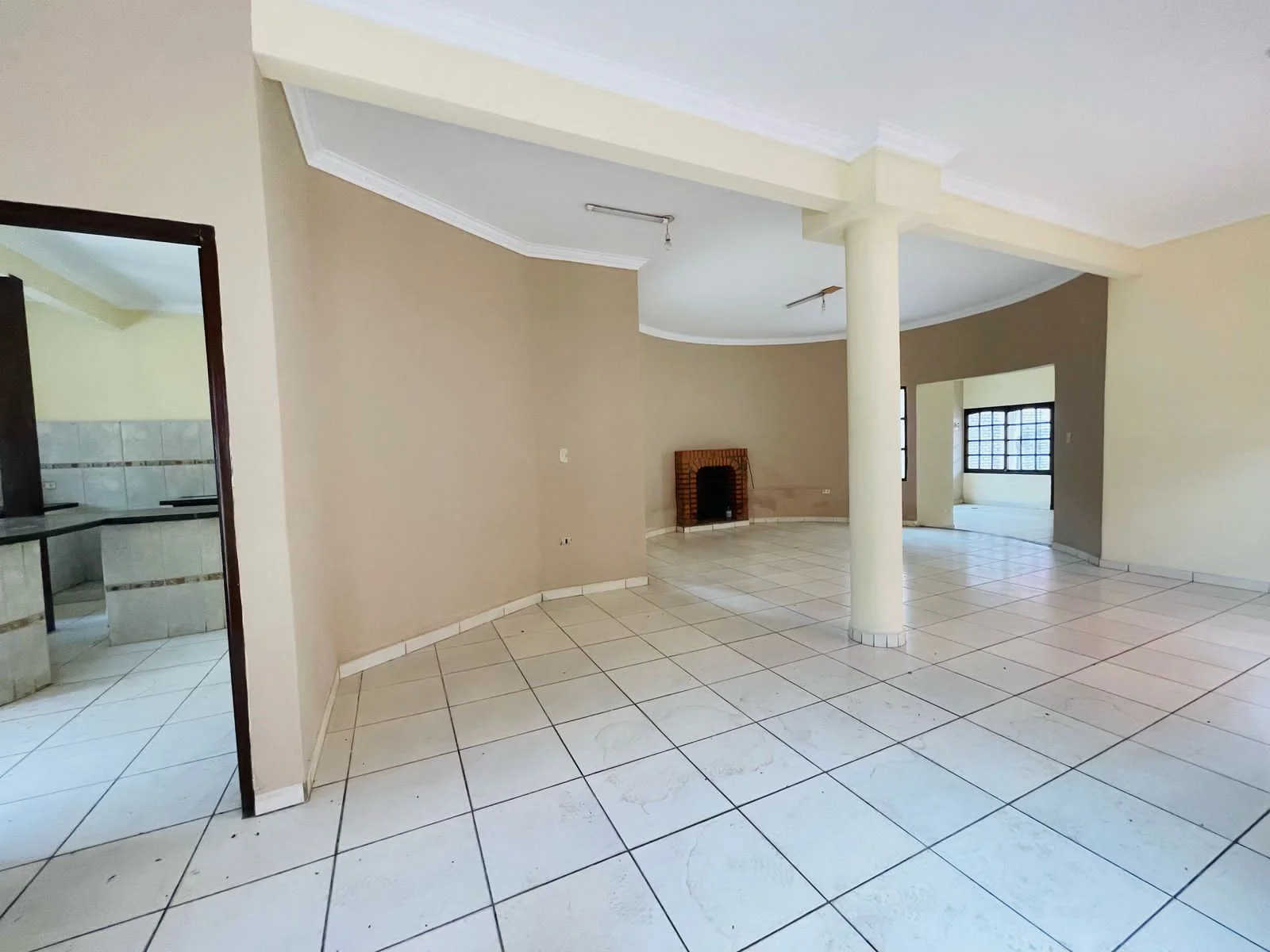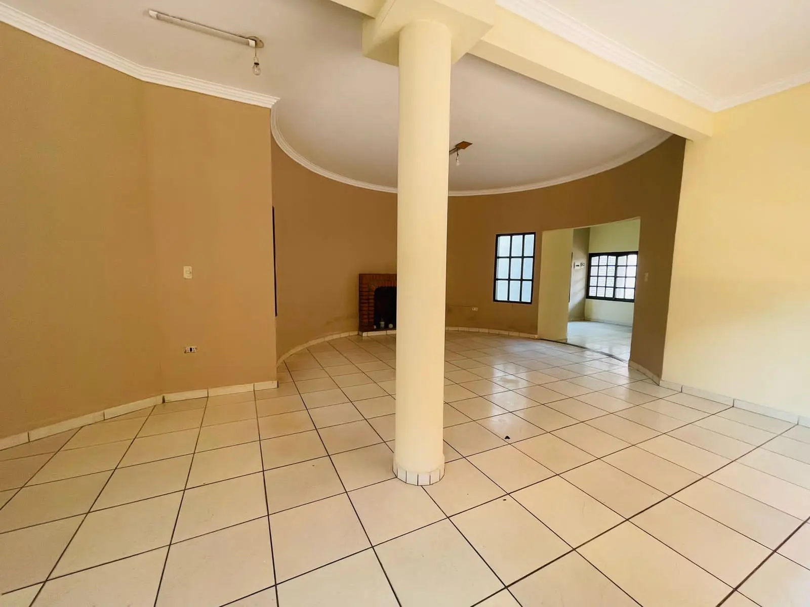 Sala de tv con chimenea
