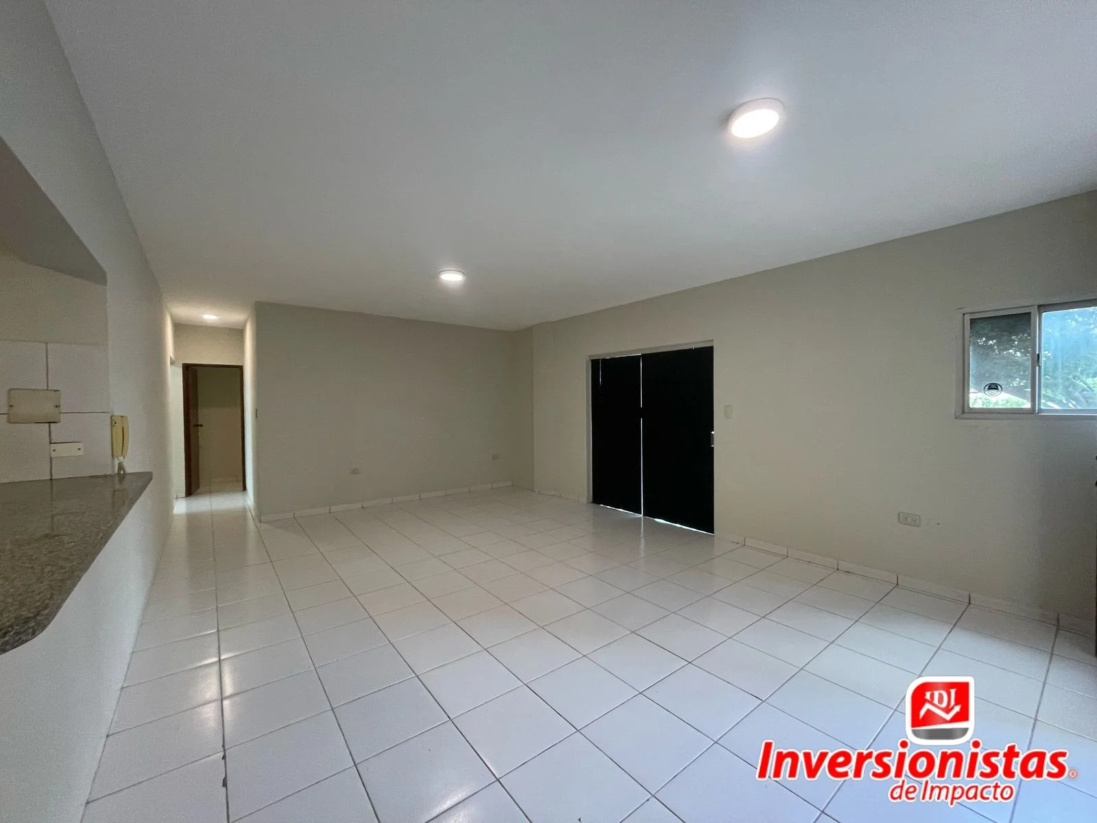Amplia sala comedor con salida de puerta de blindex.