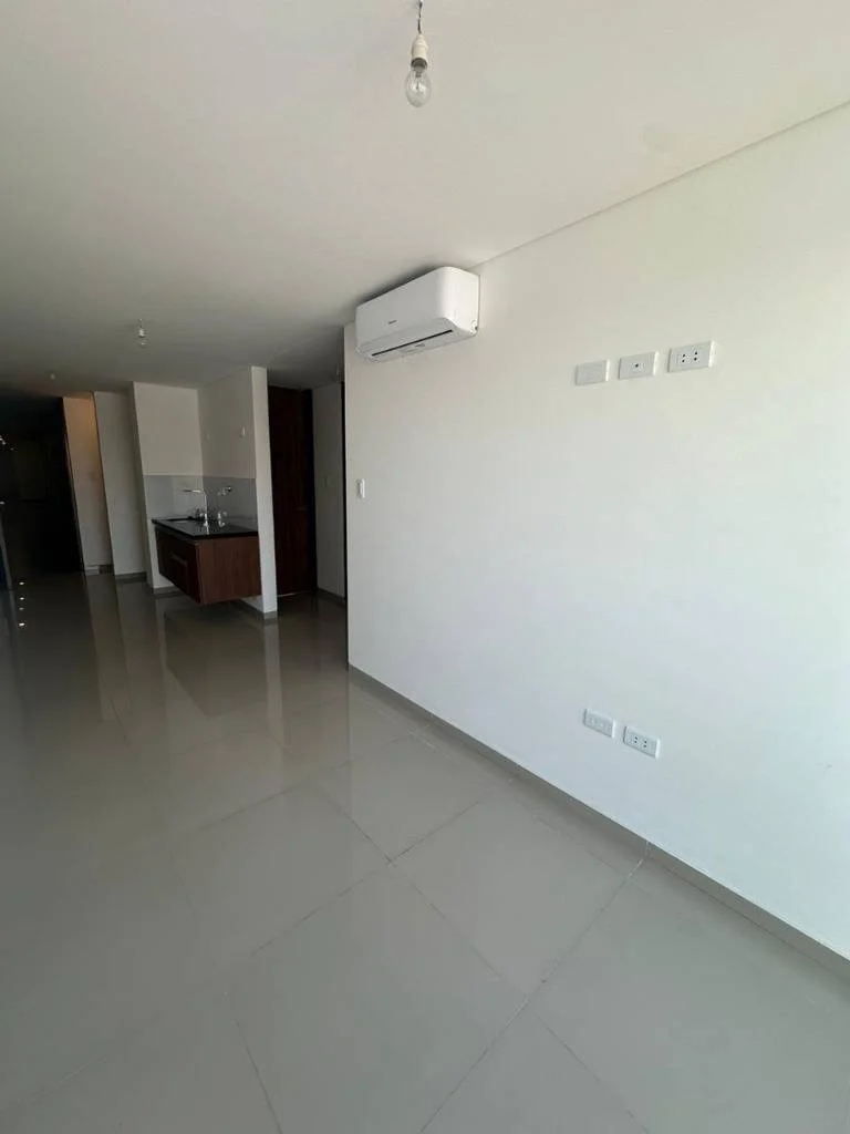 Living comedor con balcón y aire acondicionado