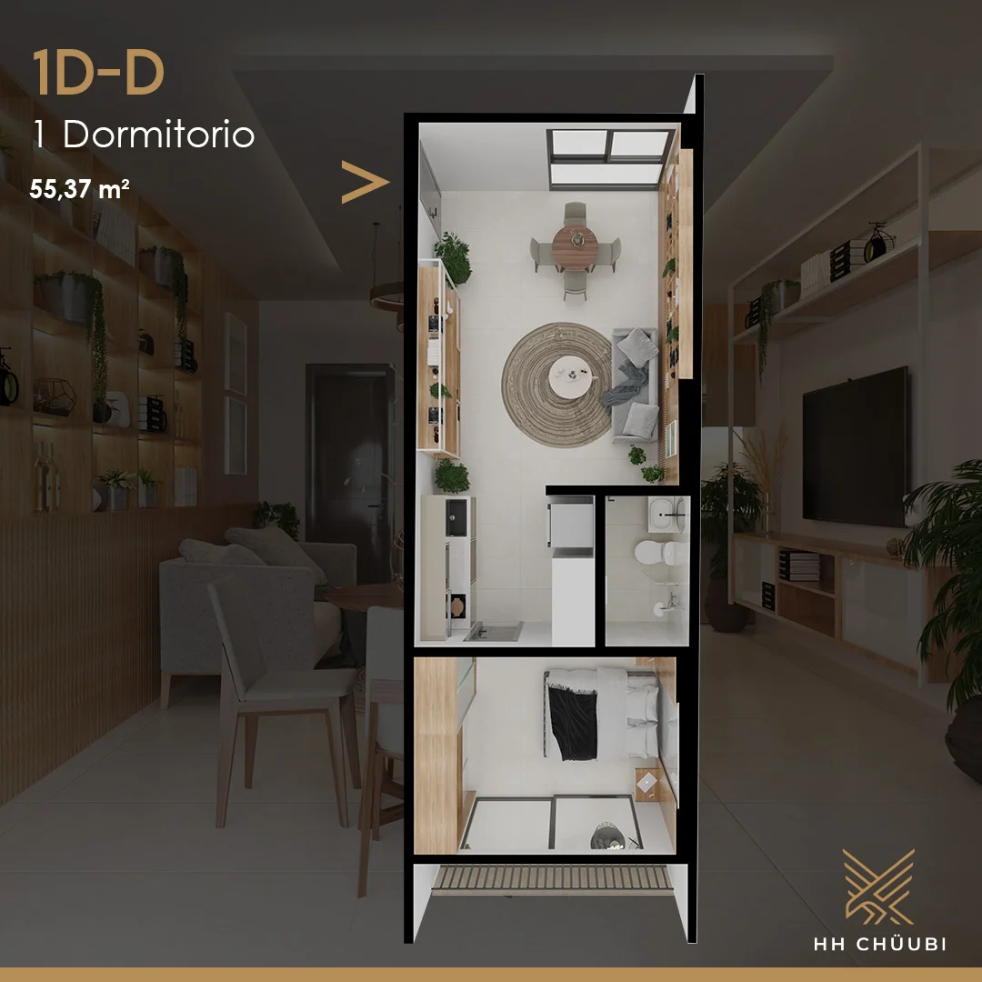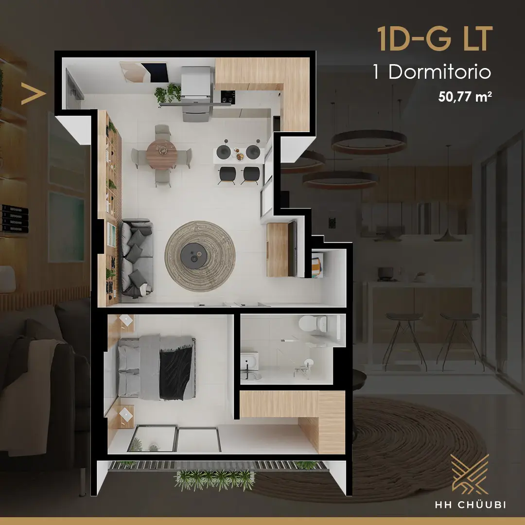 - En el departamento: Cerradura inteligente, Video portero online, Muebles altos y bajos de cocina, cocina encimera y extractor, Mueble bajo y box de baño, Puertas de roperos. (solo dptos. de 1 y 2 dormitorios), piso de porcelanato, iluminación LED, Solo instalaciones de lavadora, secadora, a/c, calefón (no incluye los equipos)
