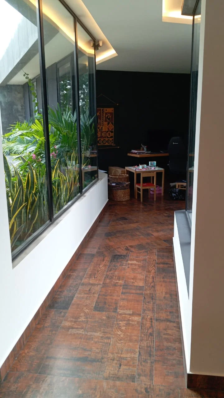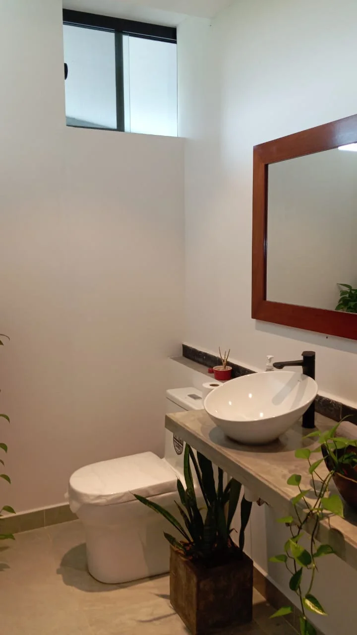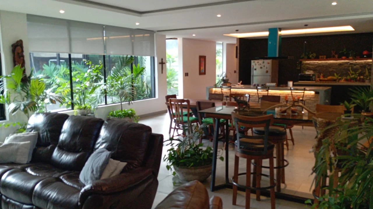Tiene 4 dormitorios en suite, living comedor muy amplio, cocina equipada , sala tv, galeria amplia con churrasquera y jardin interior, 2 depositos , dpcias de servicio con ducha y bano , lavanderia amplia, baño de visita, jardin grande y 2 parqueos