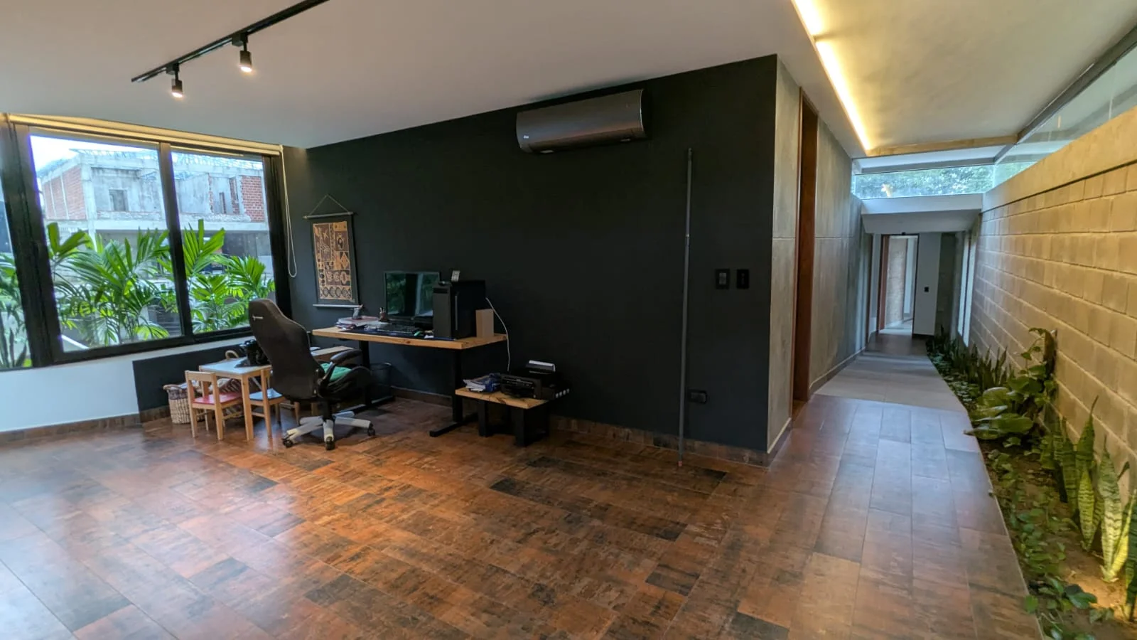 Viene con aires, black out en las suites y una piscina.