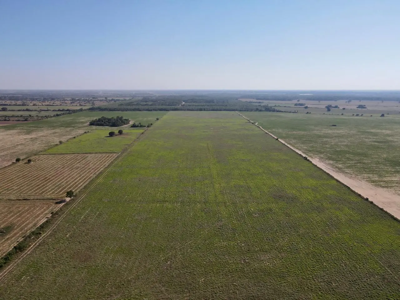 El terreno tiene una forma rectangular con 212 metros de frente, 969 metros y 937 metros en los laterales, y 217 metros de fondo. Actualmente, se encuentra desmontado y con pasto sembrado para ganadería.