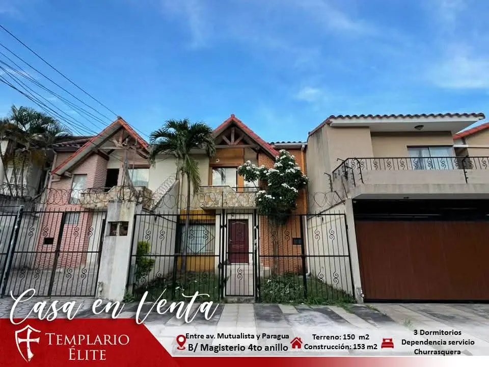 Entre 3 y 4 anillo, Av. Mutualista y Av. Paragua Barrio Magisterio frente a una iglesia y cerca de 2 colegios.