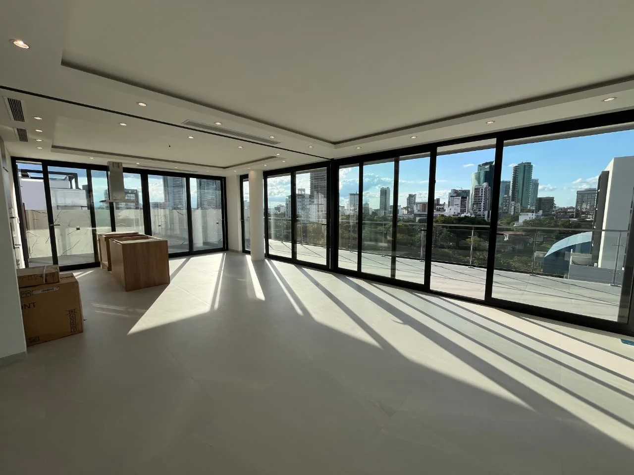 CARACTERISTICAS.- 3 habitaciones en suite (todas con balcón), Superficie de 370 m2, cocina equipada con muebles altos y bajos, vidrios DVH (aislante termoacústicos), balcón con vista panorámica en living-comedor, área de servicio.