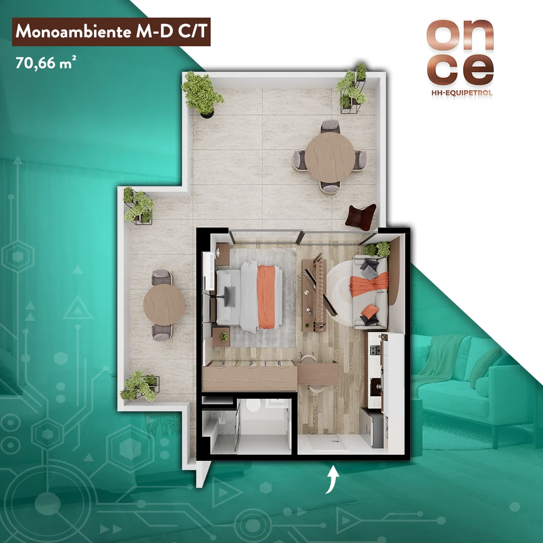 - en el edificio: Aplicación del celular, control de acceso, cámaras de seguridad en cada nivel, casilleros inteligentes y ascensor eco-friendly.