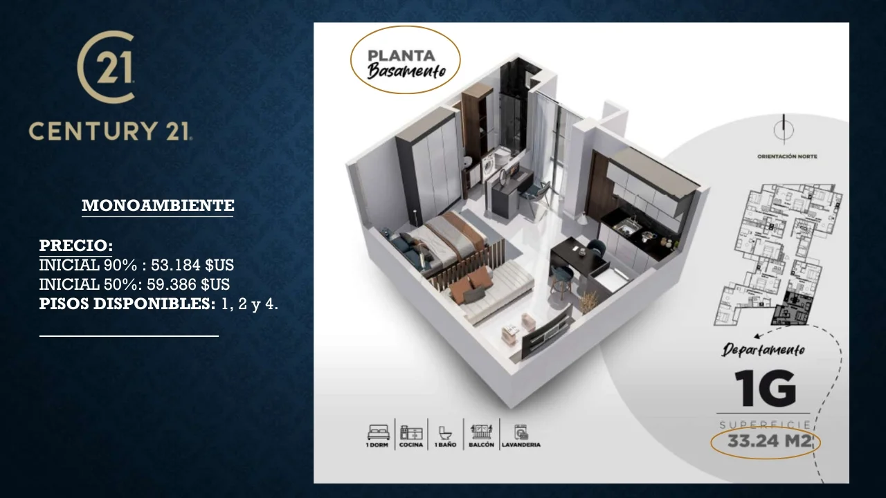Departamentos de 1 Dormitorio y monoambientes.