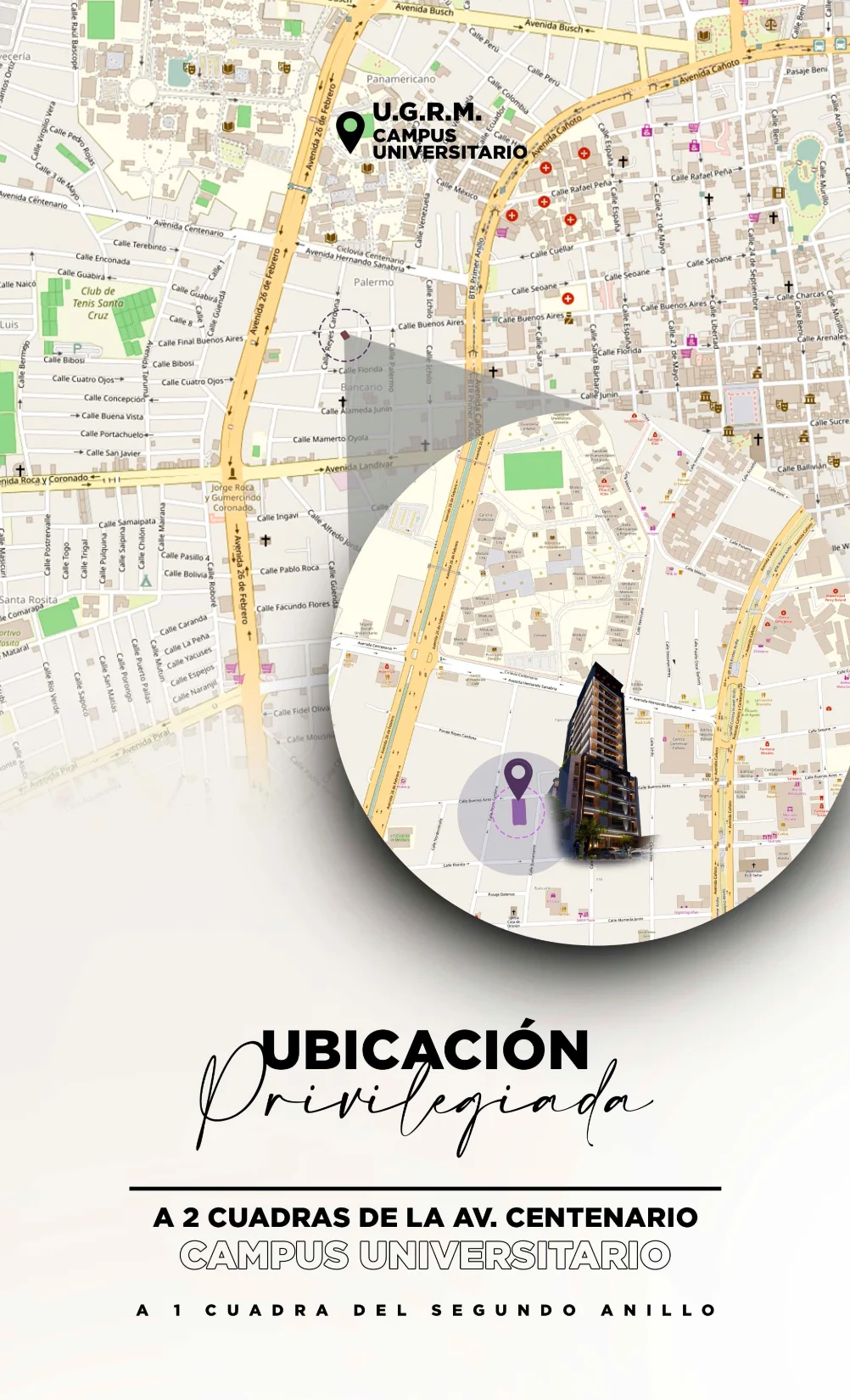 Zona UAGRM, 2do anillo a una cuadra de la Av. Centenario y de la Universidad.
