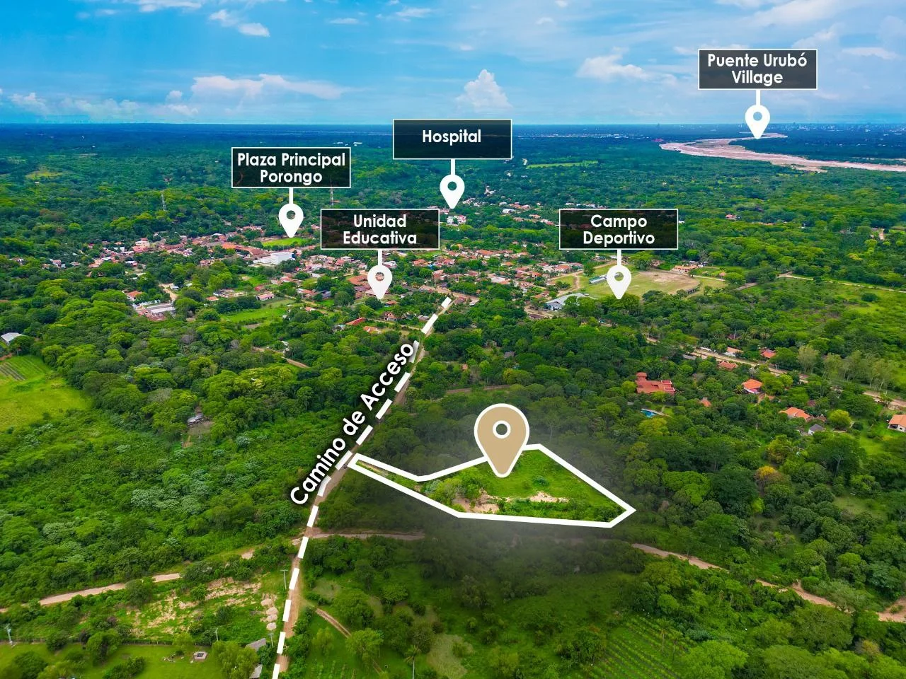Ubicación privilegiada: a solo 3 cuadras de la Plaza Principal de Porongo, en una zona tranquila y rodeada de naturaleza.